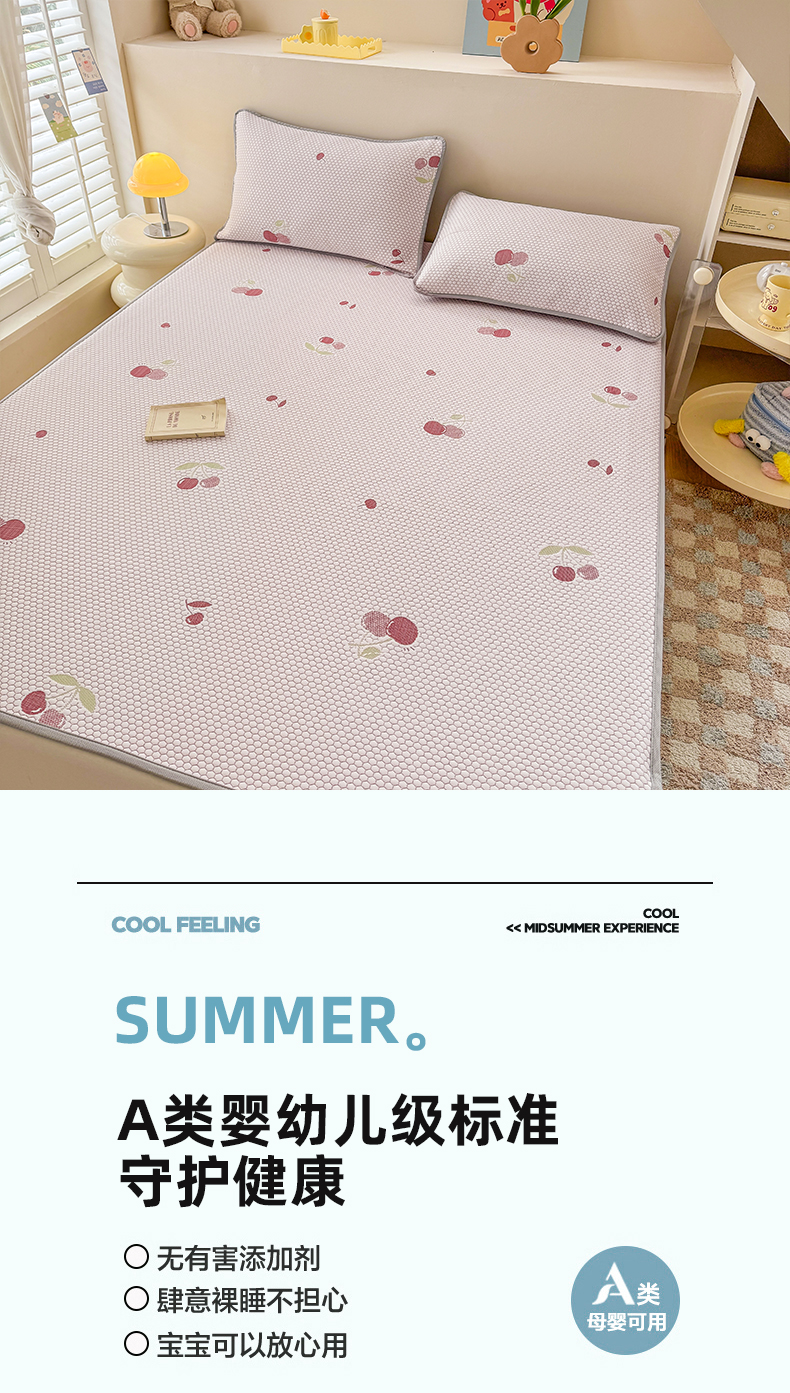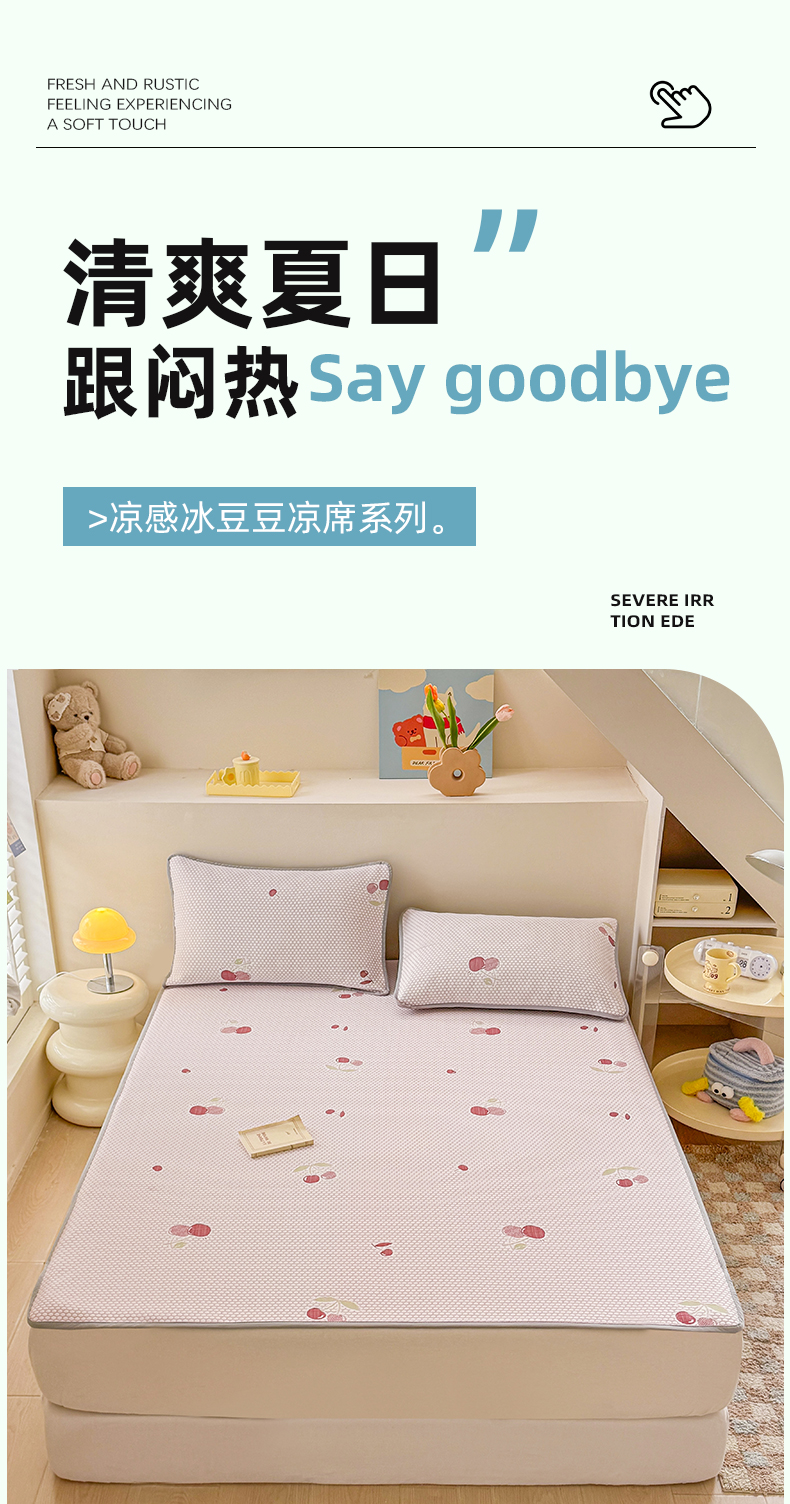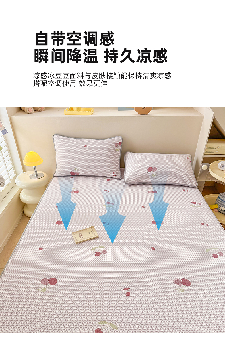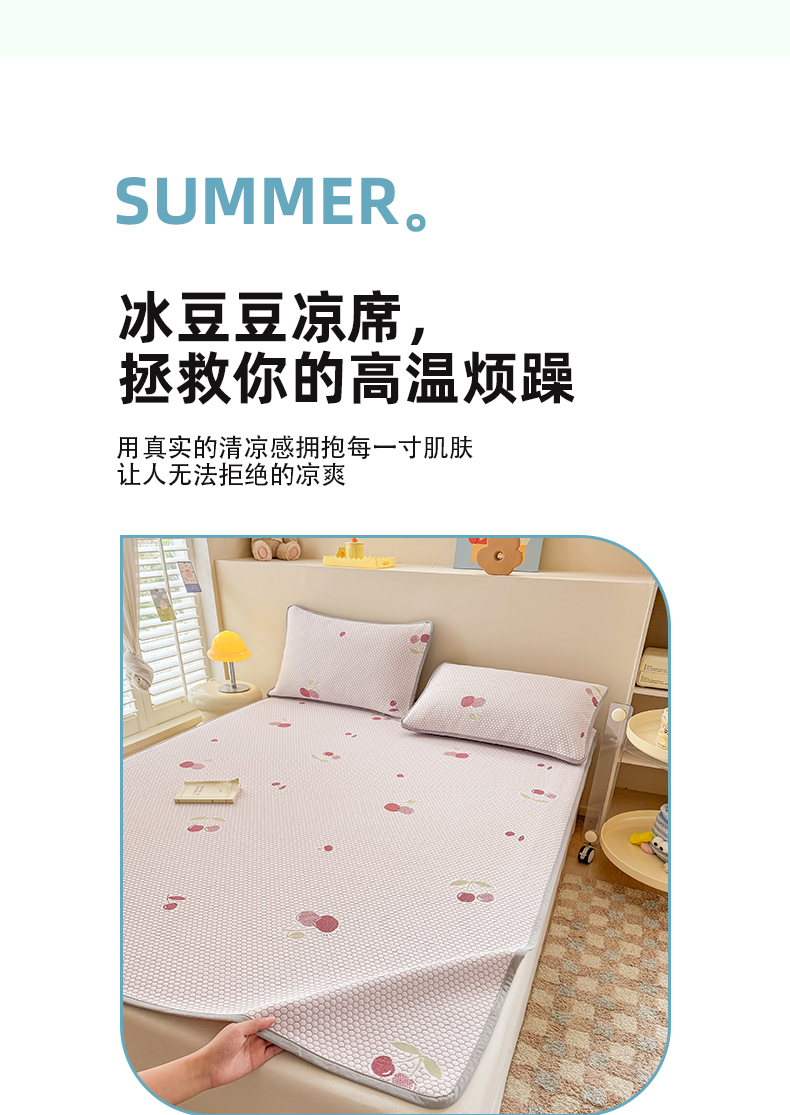 商品名称:(总)2025新款A类直播凉感冰豆豆凉席凉豆豆软席三件套空调席冰丝席子单凉席两件套【量大从优】