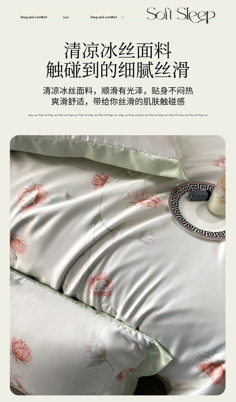 商品名称:(总)优悦生活馆 2025新款顺滑冰丝夏被四件套-轻梦轻语