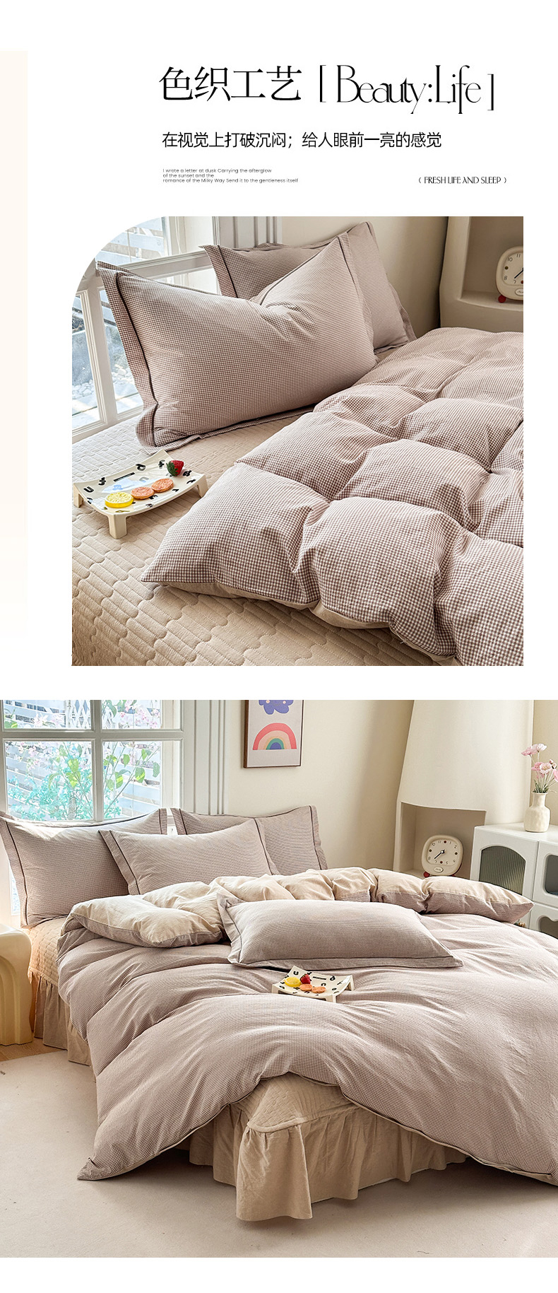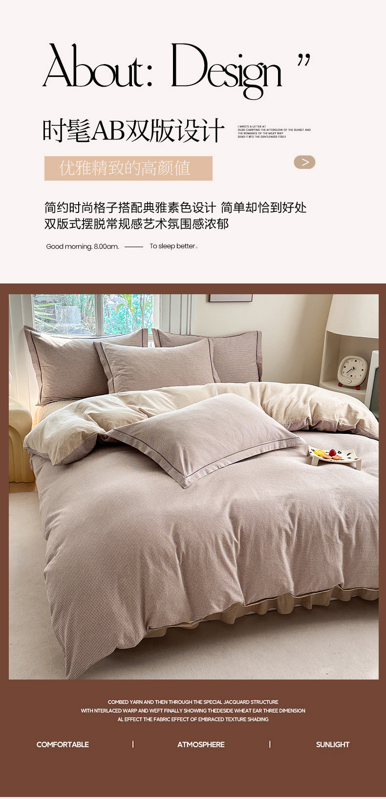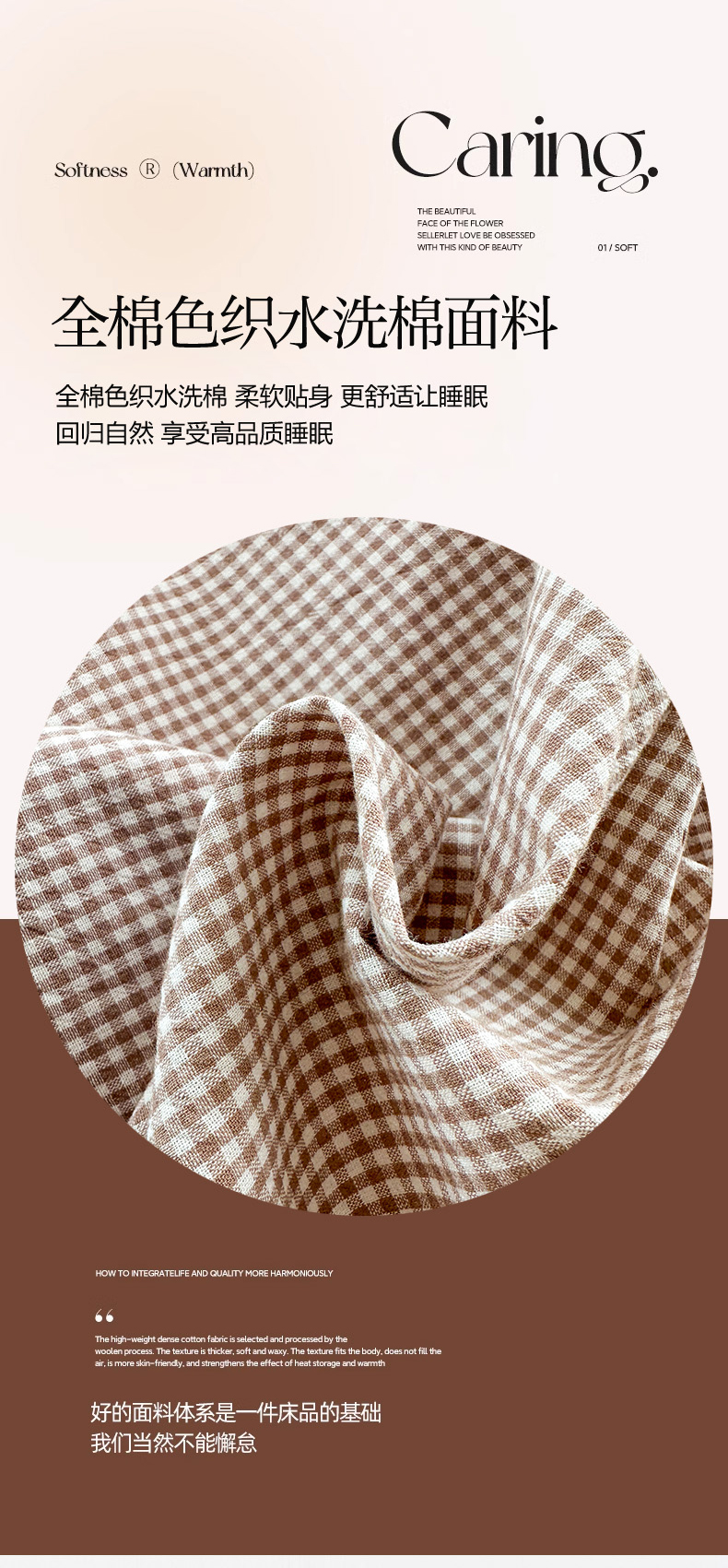 (总)金窝窝家纺 2025新款全棉色织水洗棉床盖四件套,春意盎然淡绿色,春薏时尚灰,多爱多粉色,繁星奶咖米格,绿咖时尚格,米菲灰,米格,浅兰小格