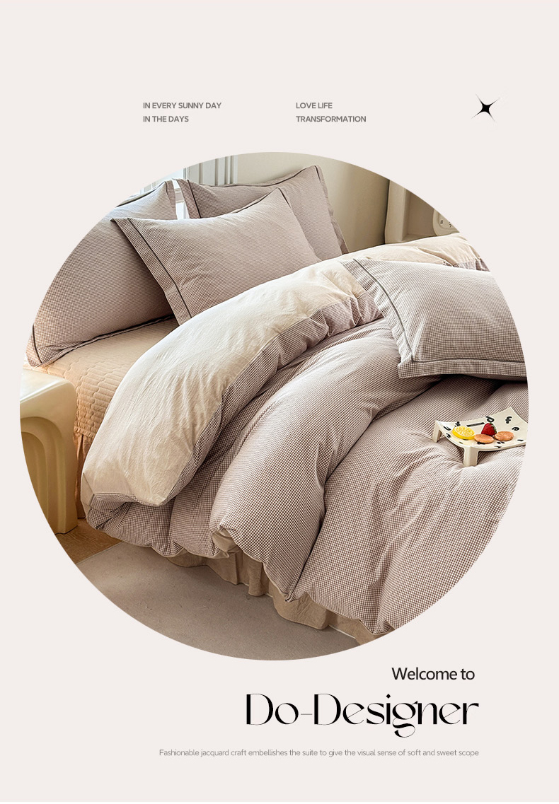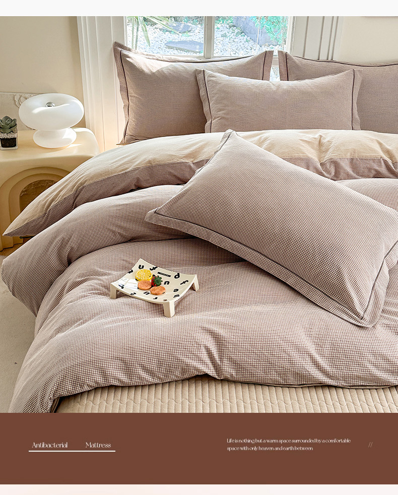 金窝窝家纺 2025新款全棉色织水洗棉床盖四件套 繁星奶咖米格