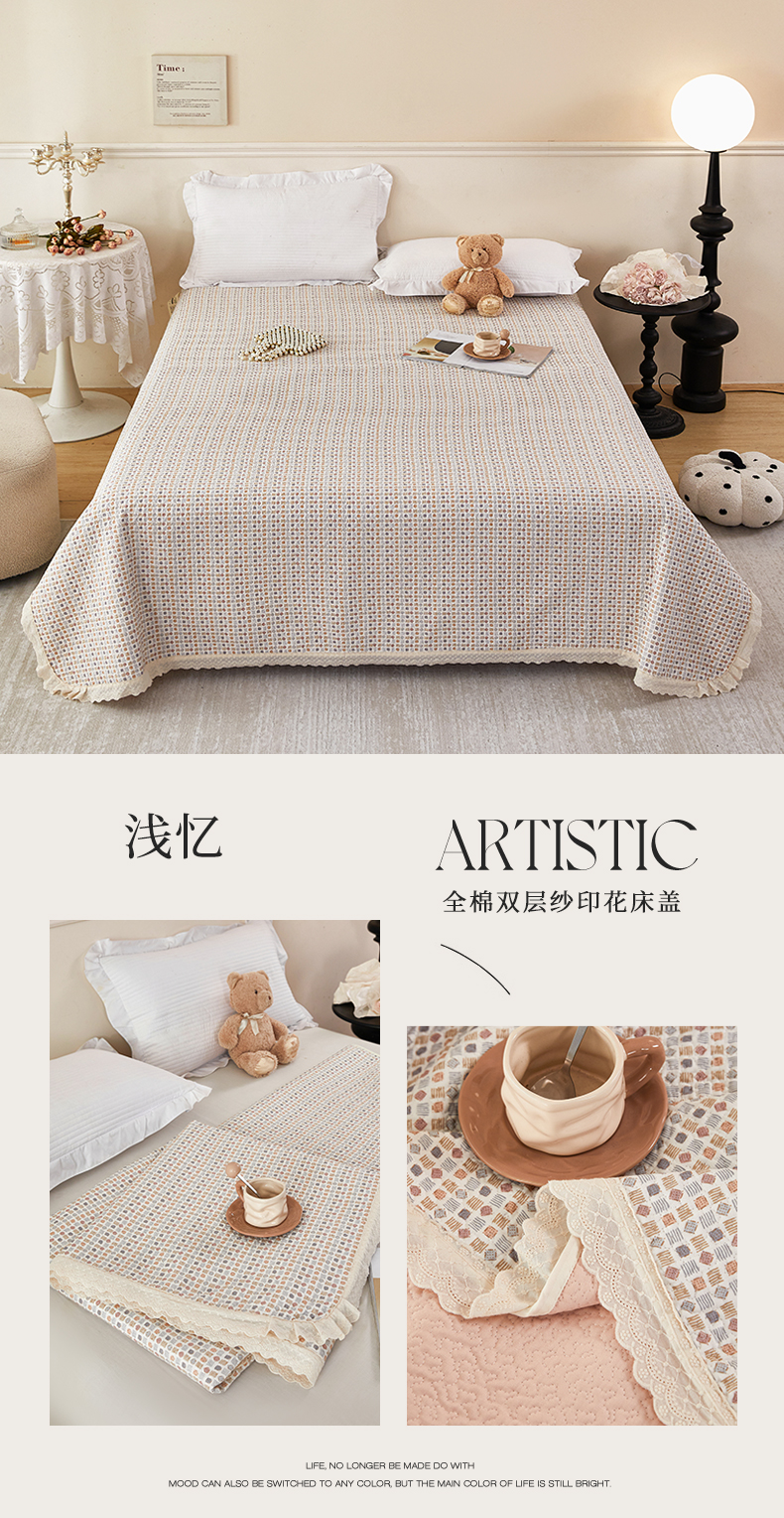 商品名称:瑞米家居 2025新款全棉双层纱印花床盖 浅忆