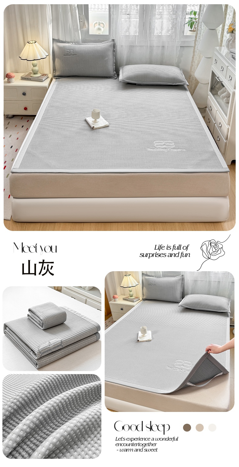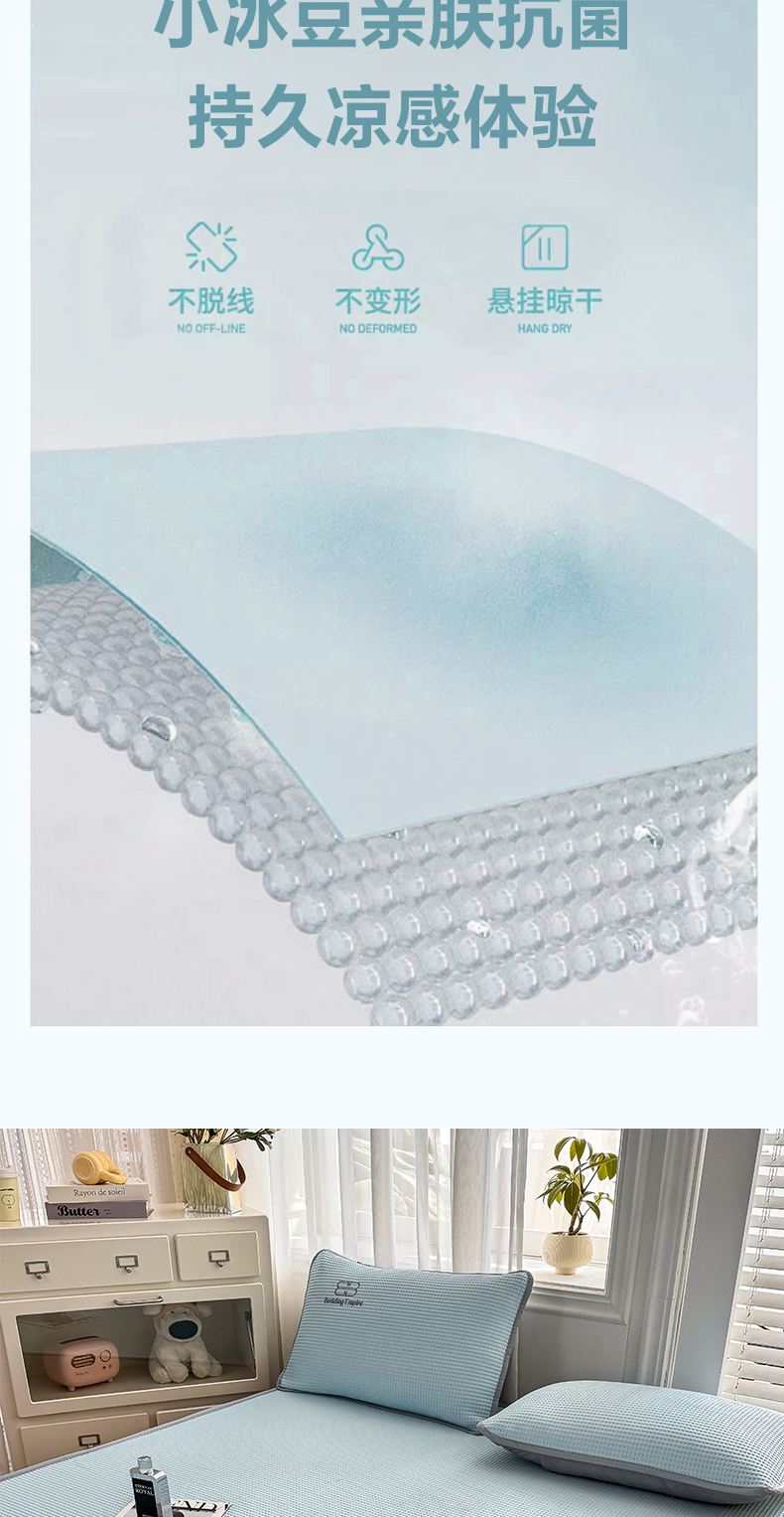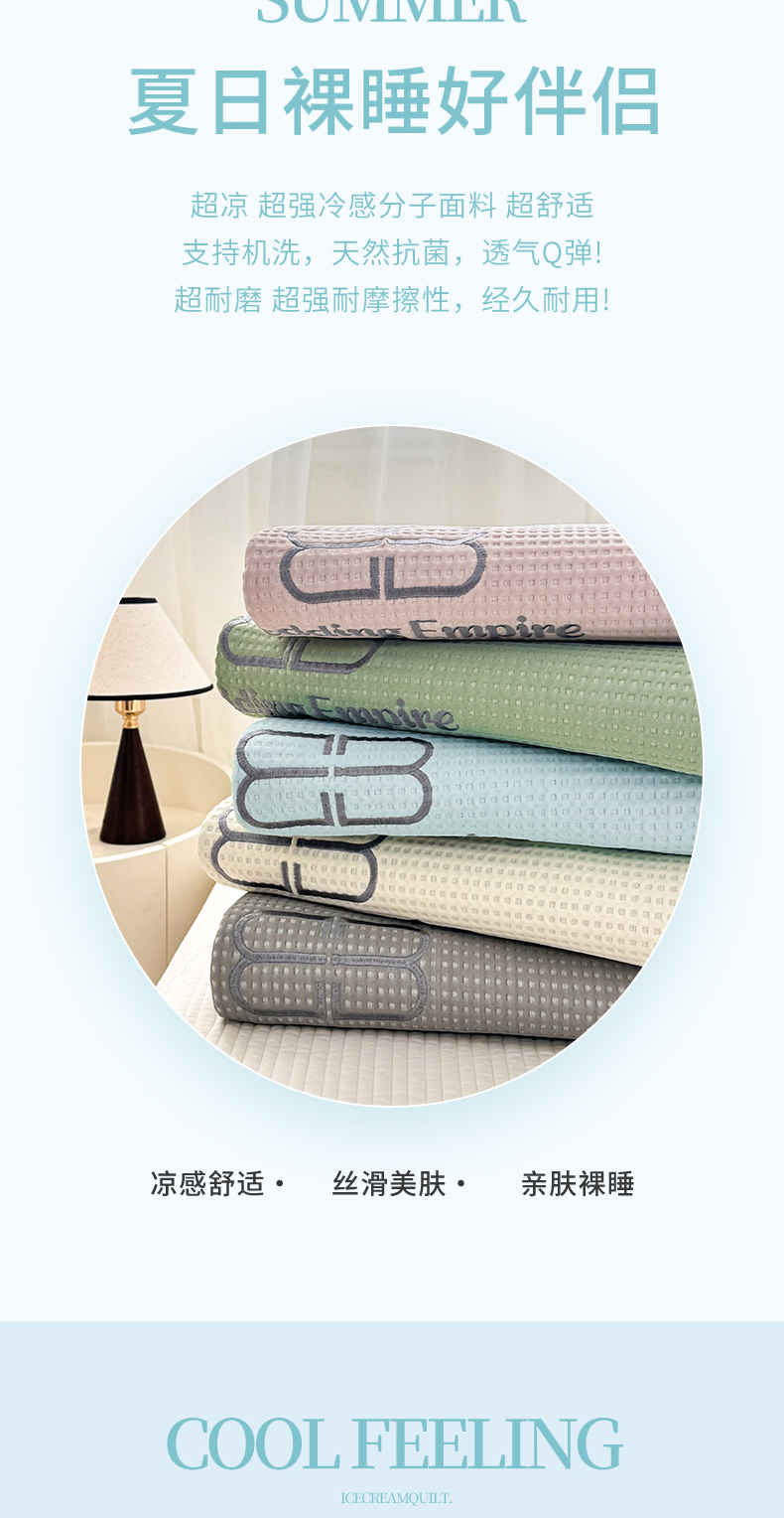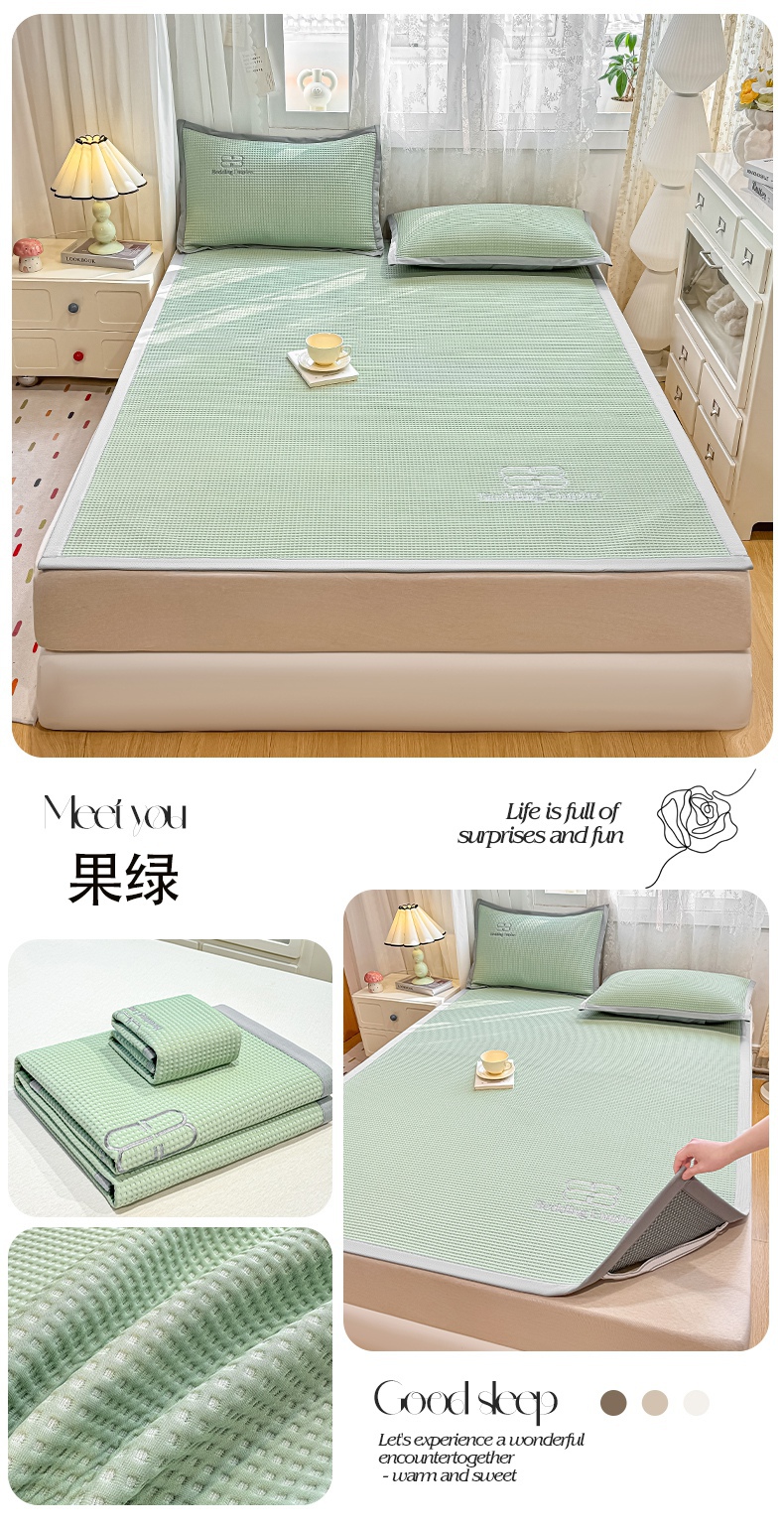 商品名称:德比尔斯 2025新款乙纶华夫格刺绣熊猫漫野冰豆豆凉席-漫野系列 果绿-床席款