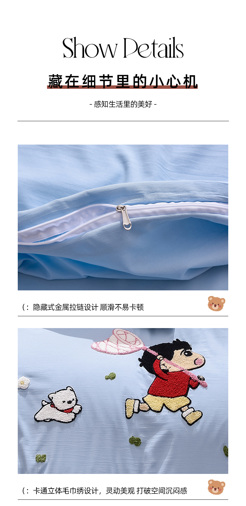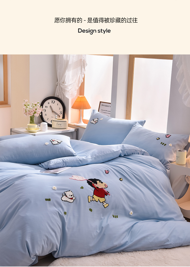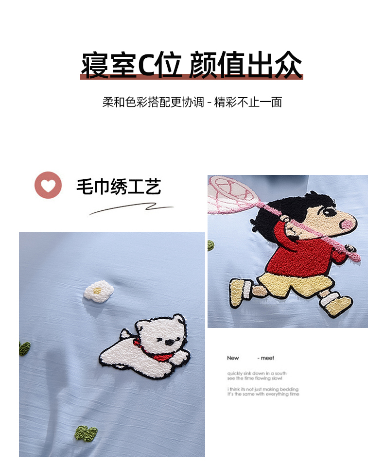 商品名称:乐窝家纺仓储 2025新款云朵棉毛巾绣磨毛四件套 蜡笔小新