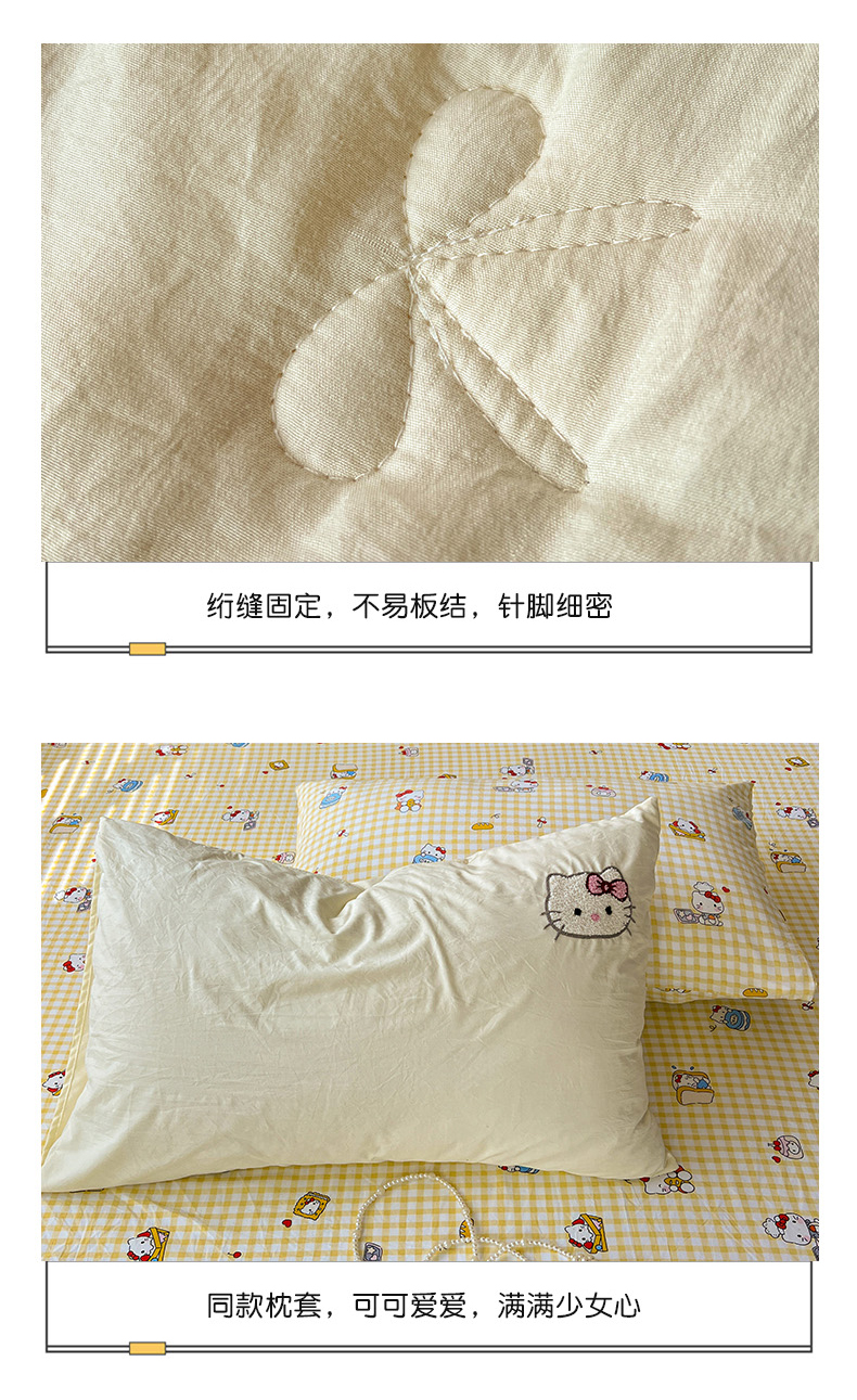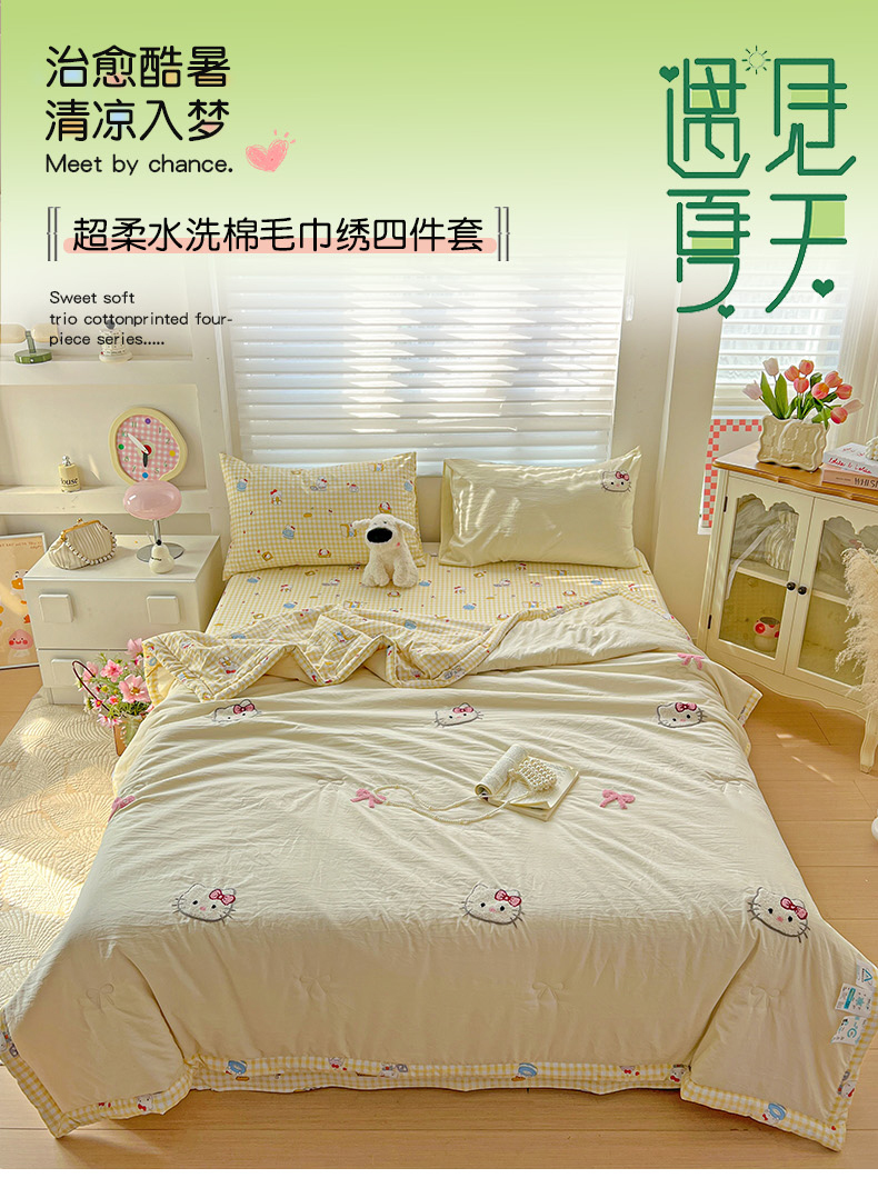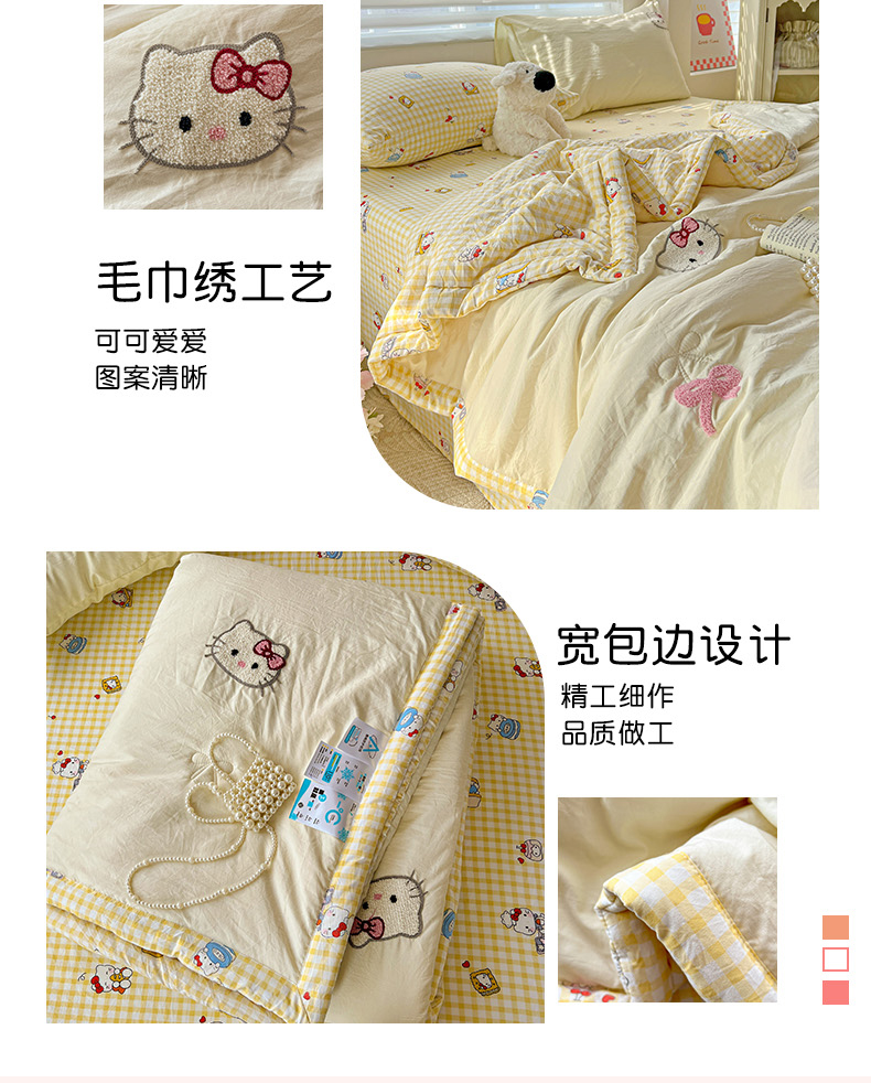 • 91家纺网 家纺一手货源 找家纺 奈颜2025新款毛巾绣超柔水洗云朵棉夏凉被四件套 甜心KT-黄小格