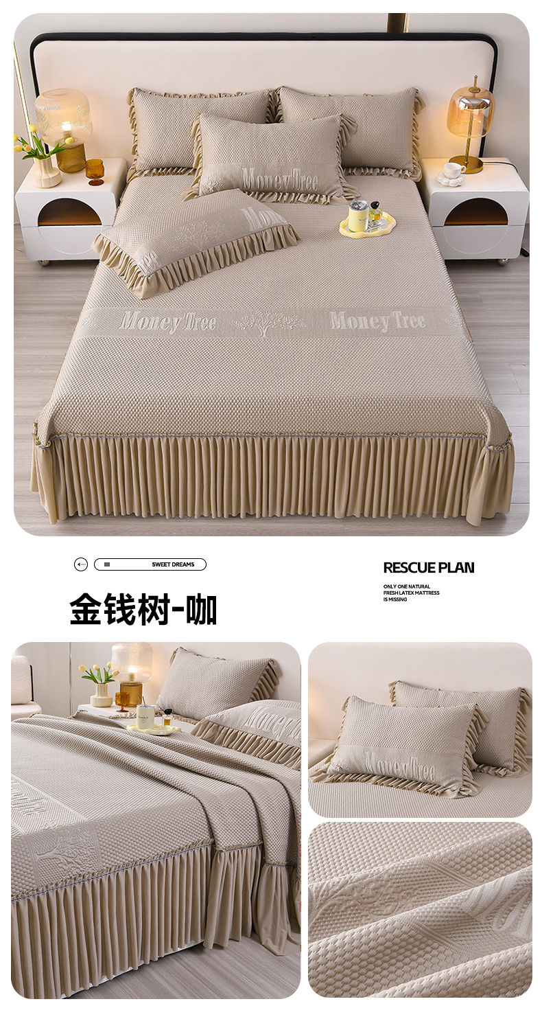 商品名称:畅畅家纺 2025新款立体提花凉豆豆席床裙款凉席 金钱树-咖
