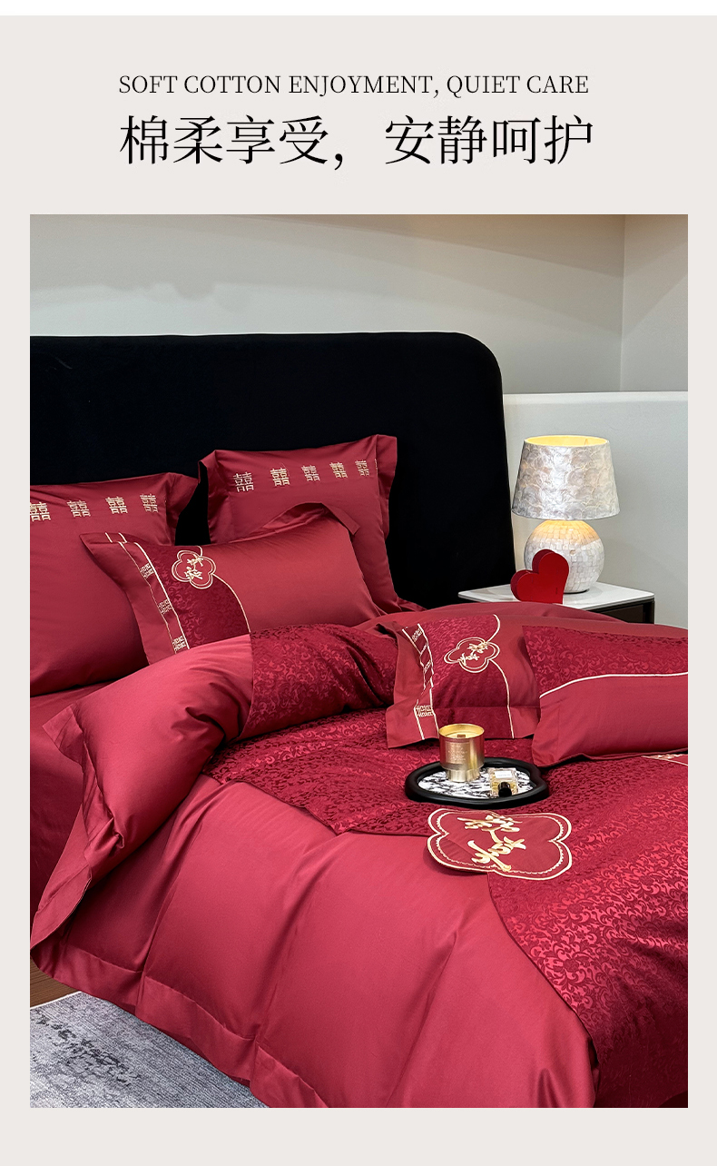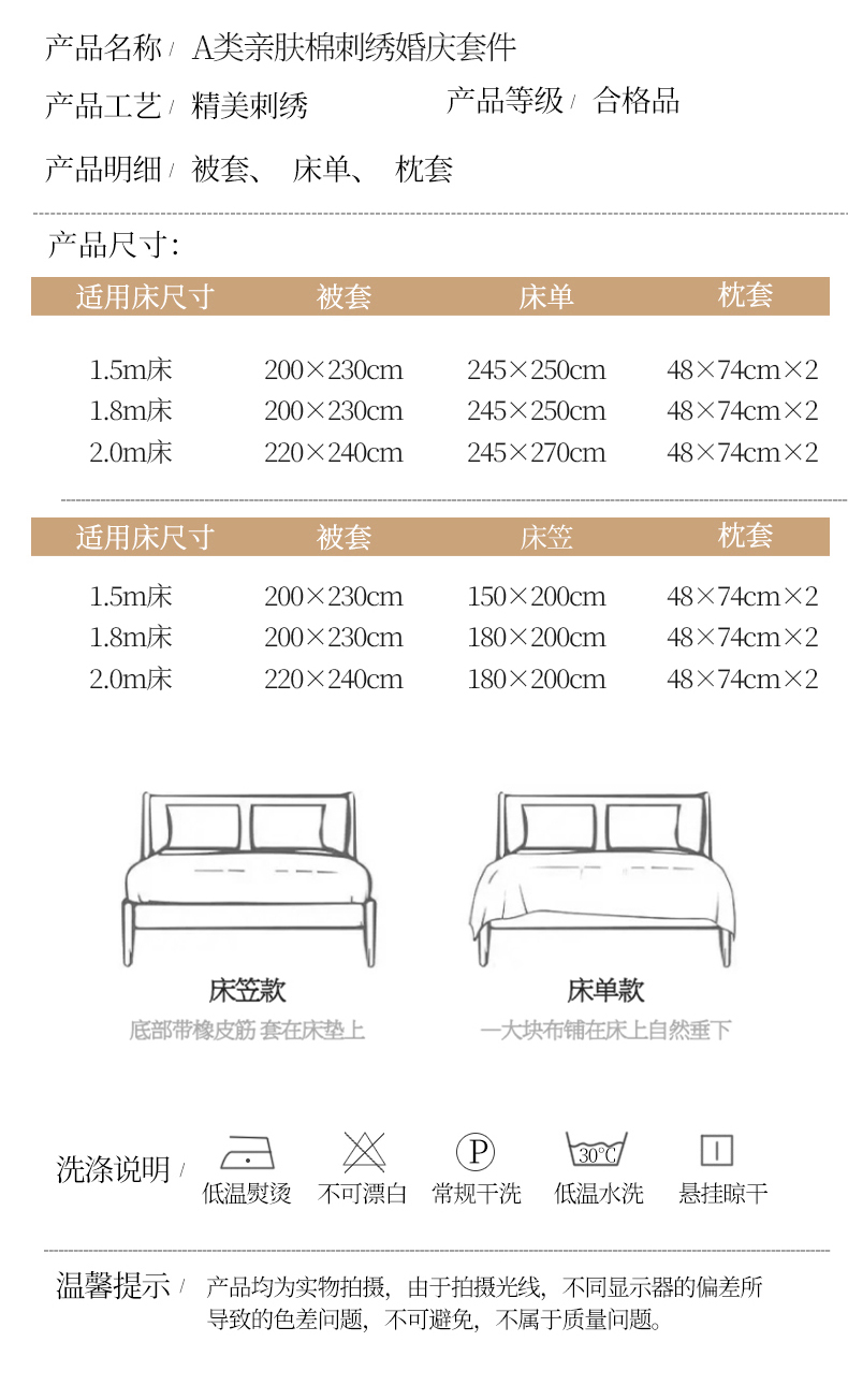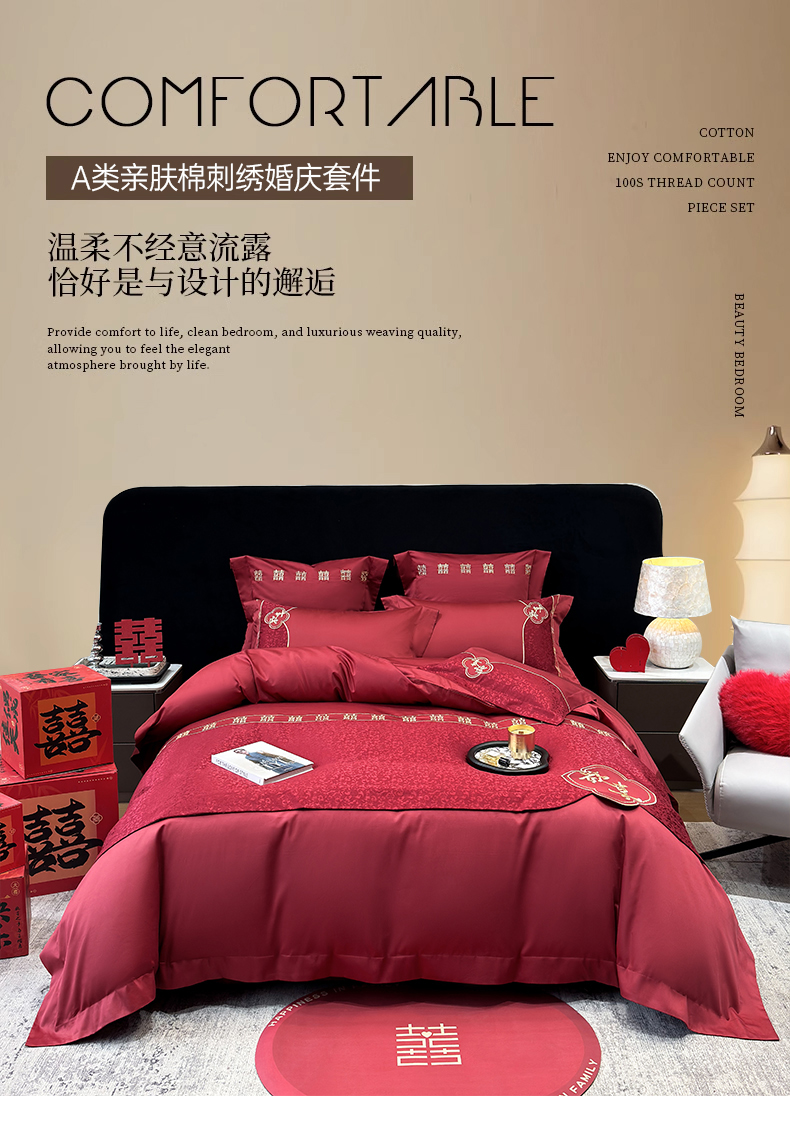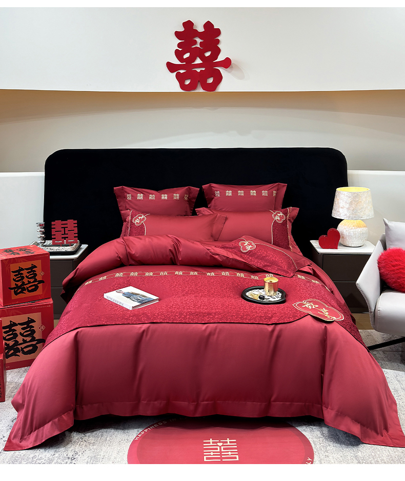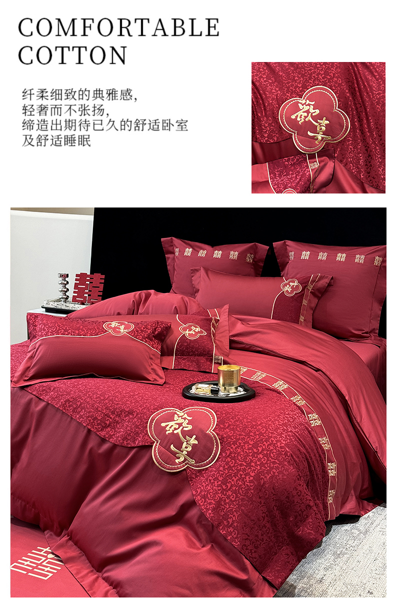 商品名称:(总)2025新款婚庆四件套亲肤棉刺绣磨毛婚庆四件套