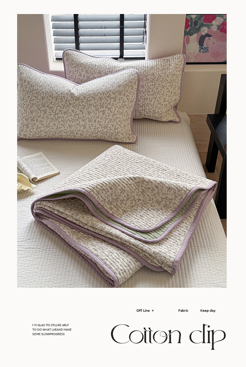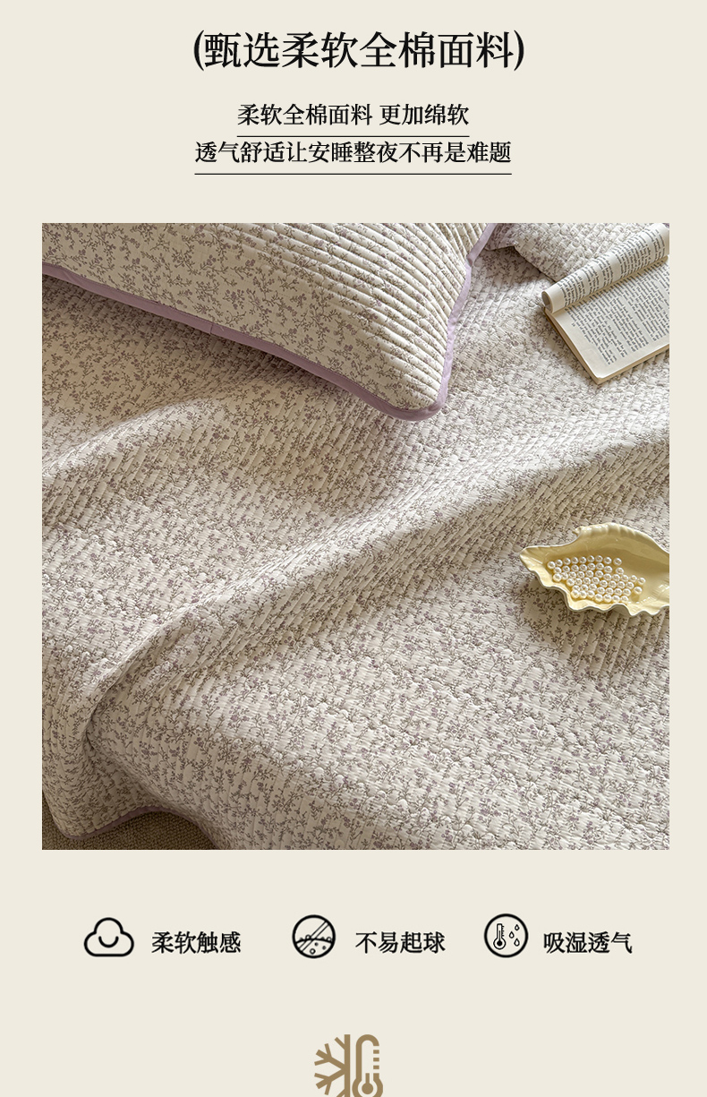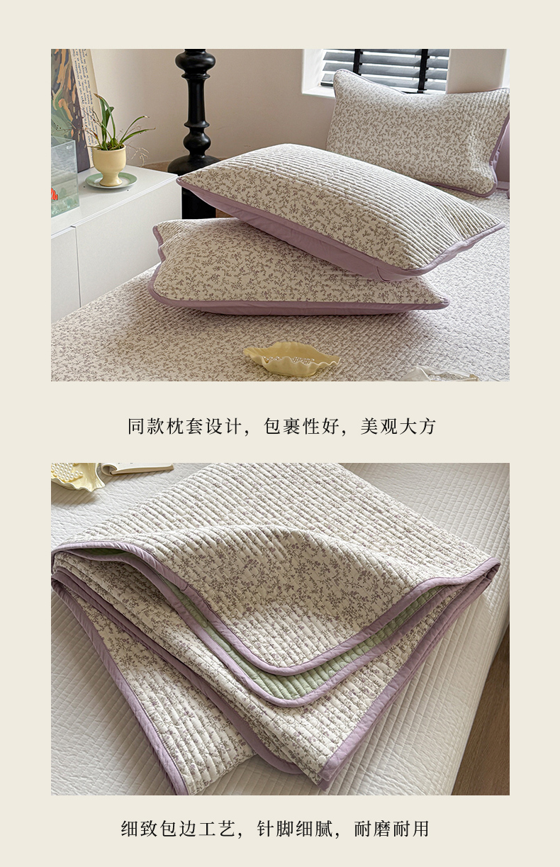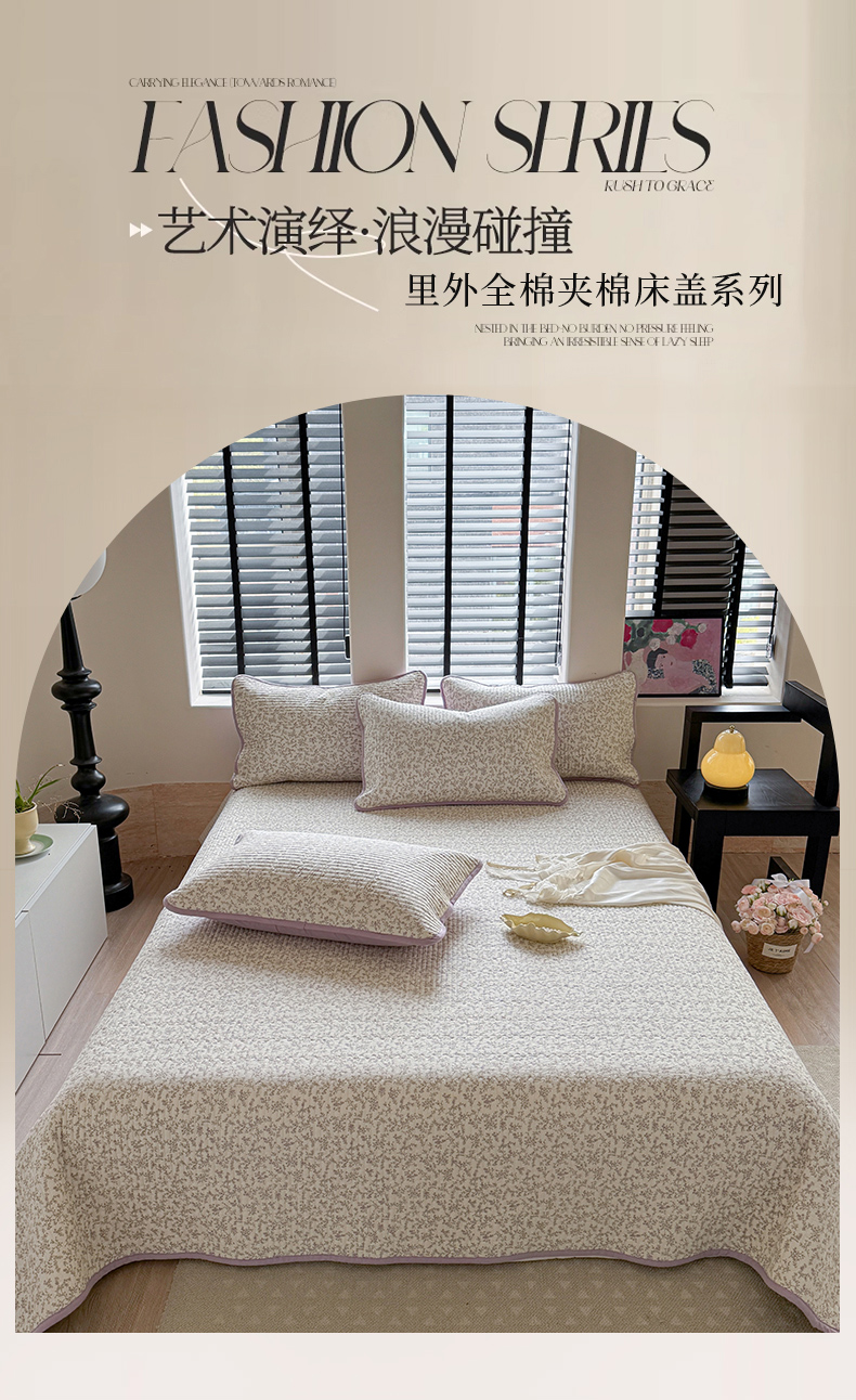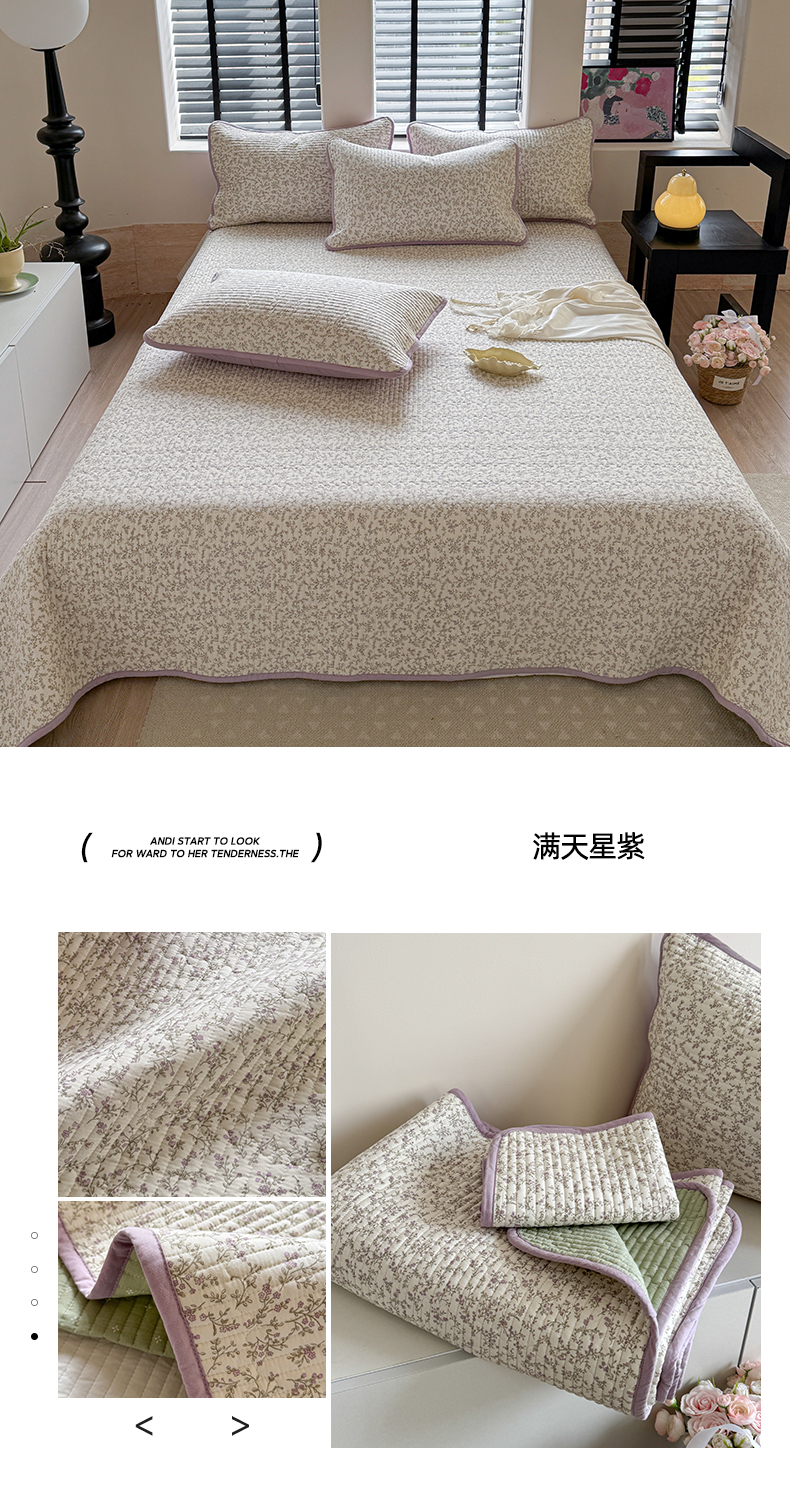 茉夕家纺 2025新款里外全棉夹棉床盖系列 满天星紫