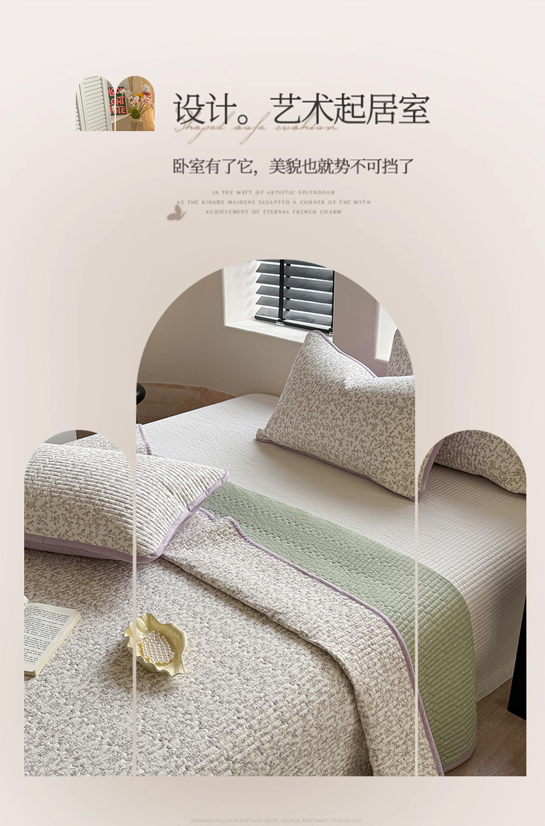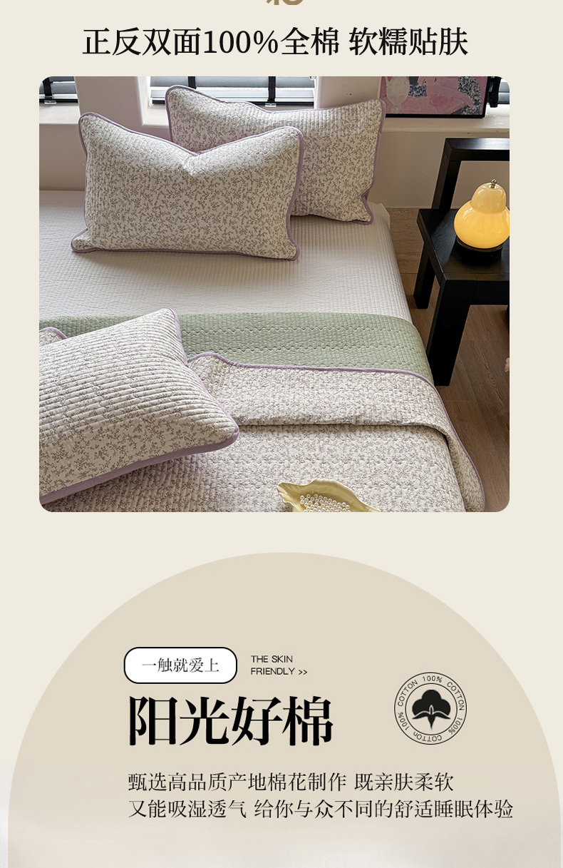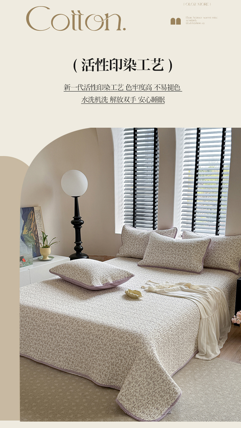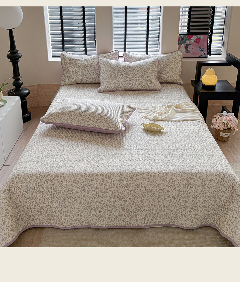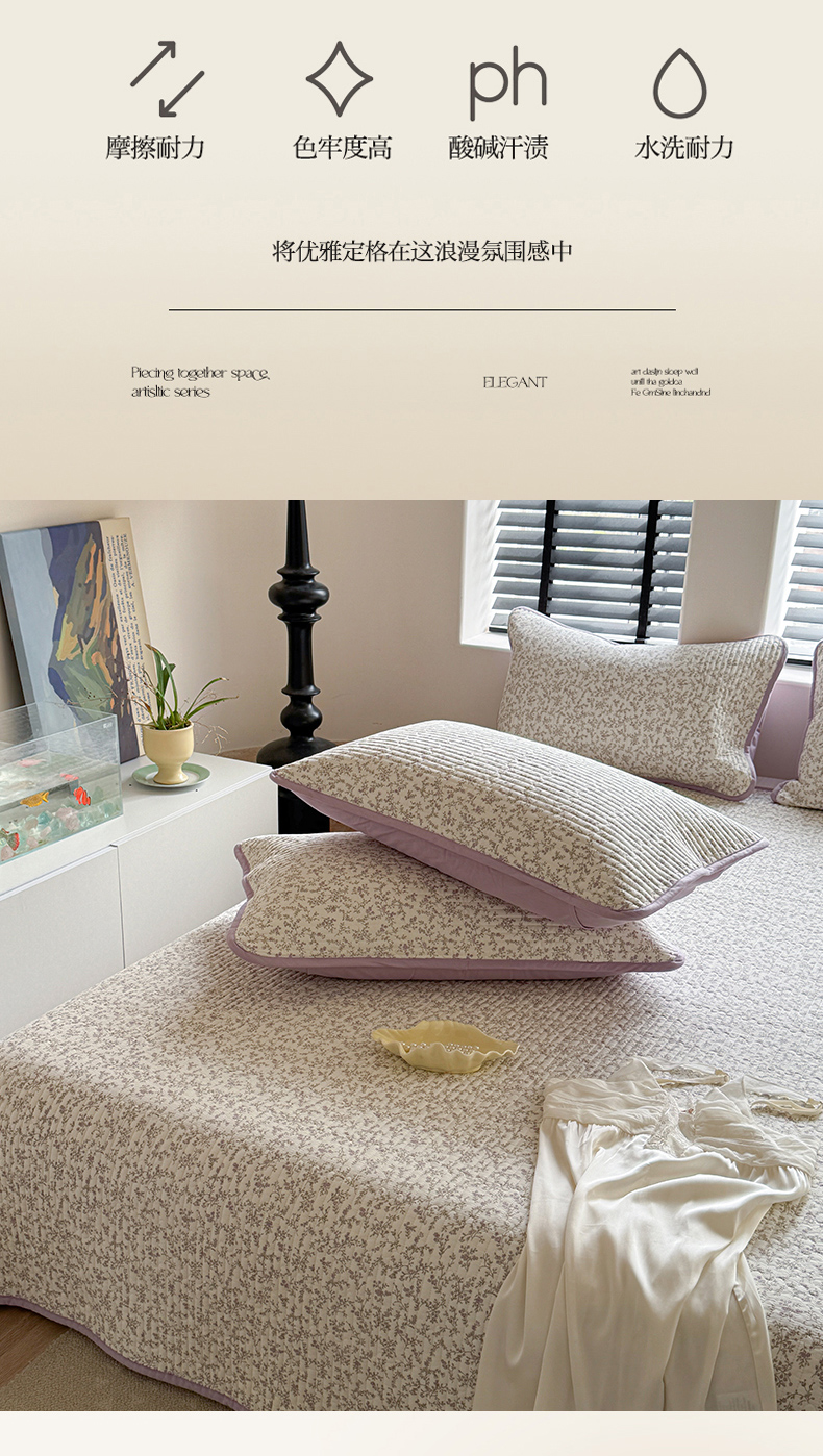 茉夕家纺 2025新款里外全棉夹棉床盖系列 满天星紫