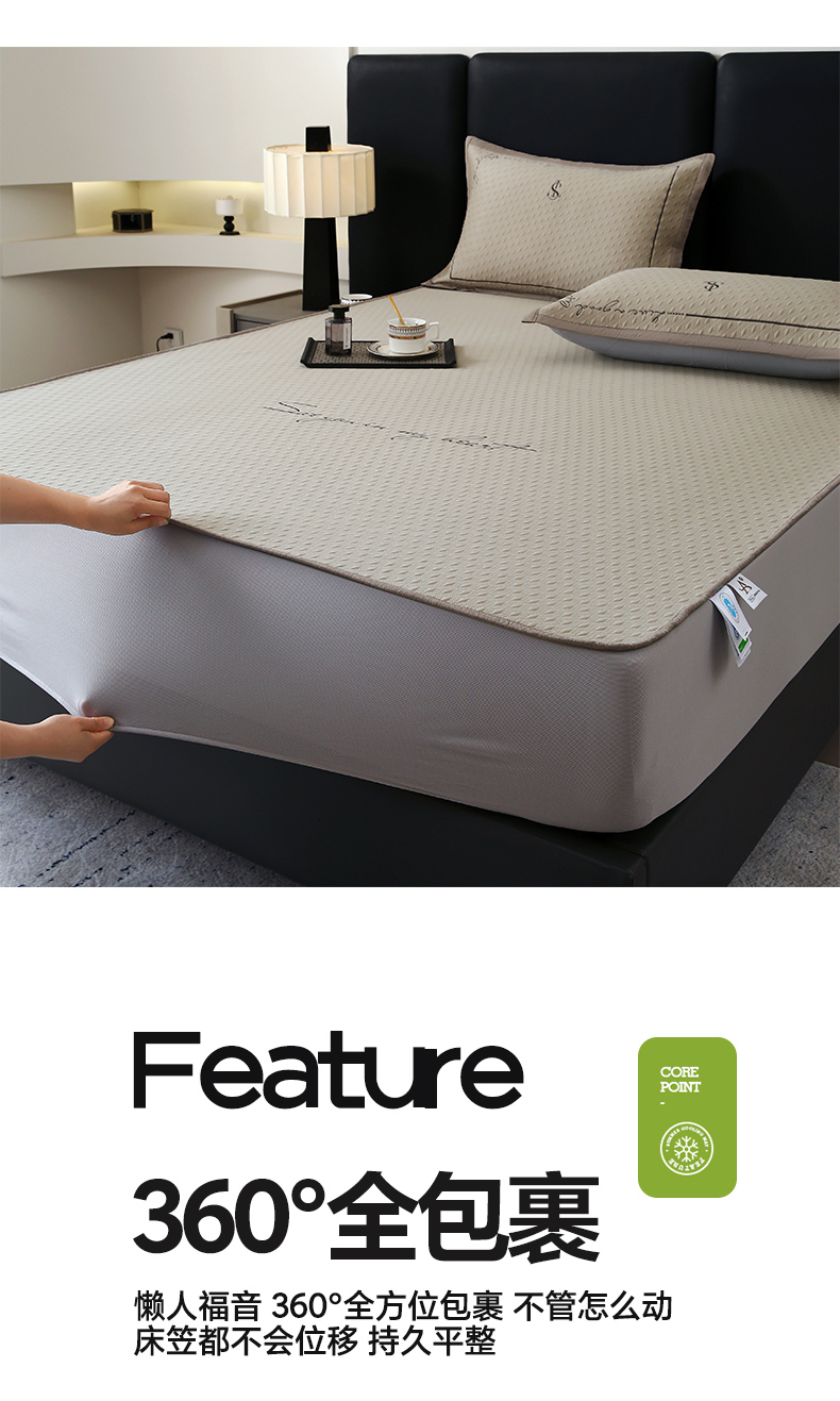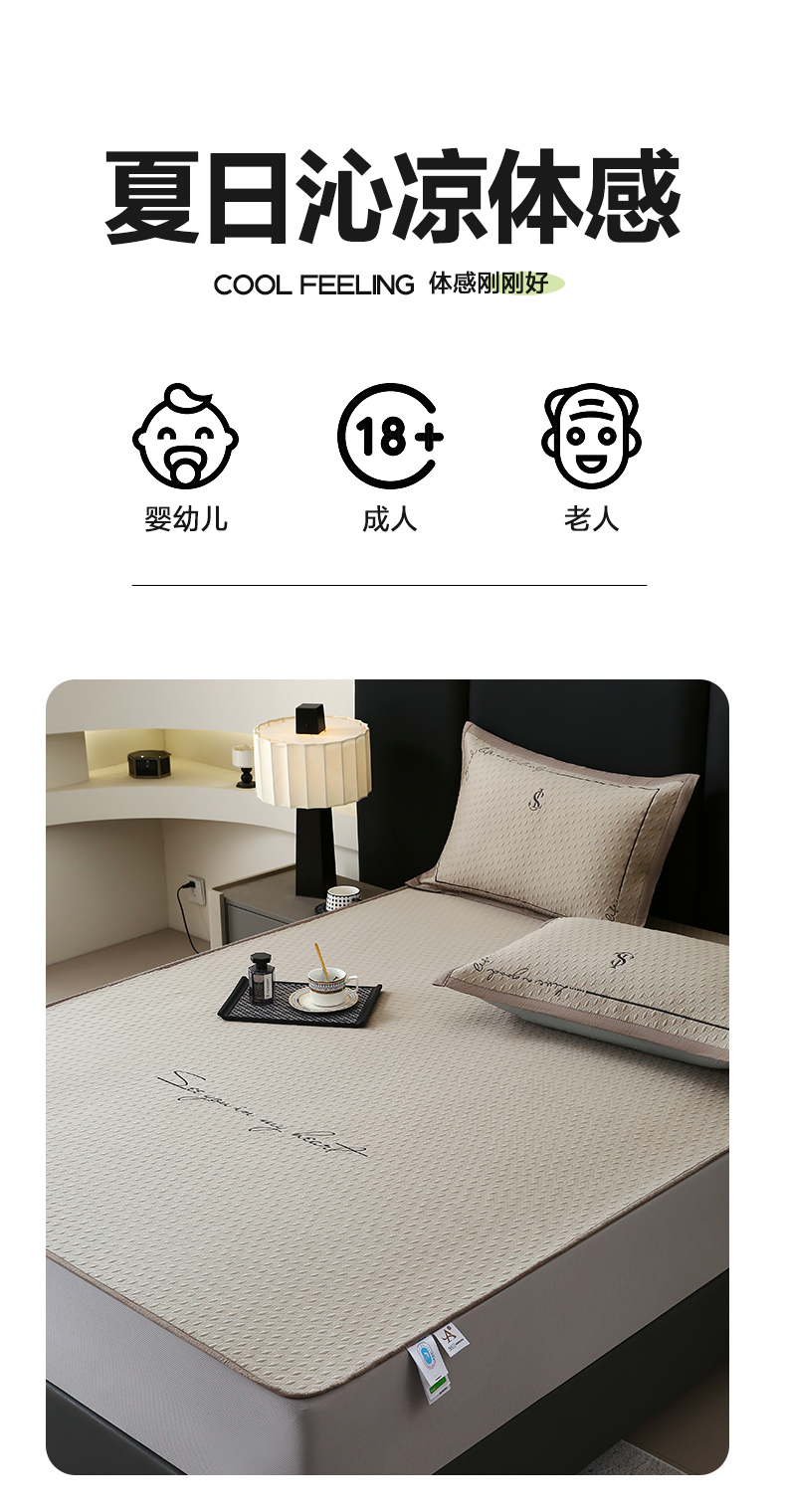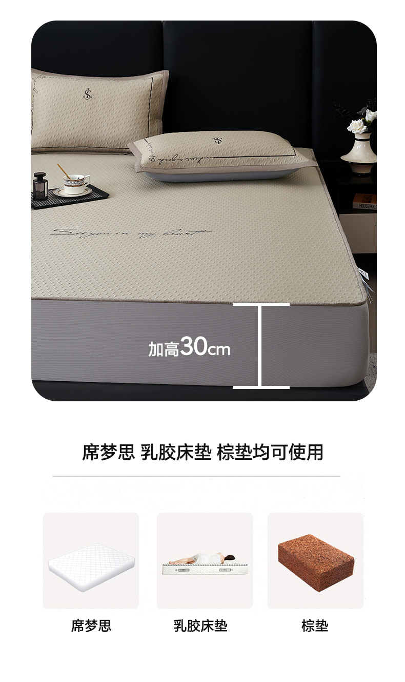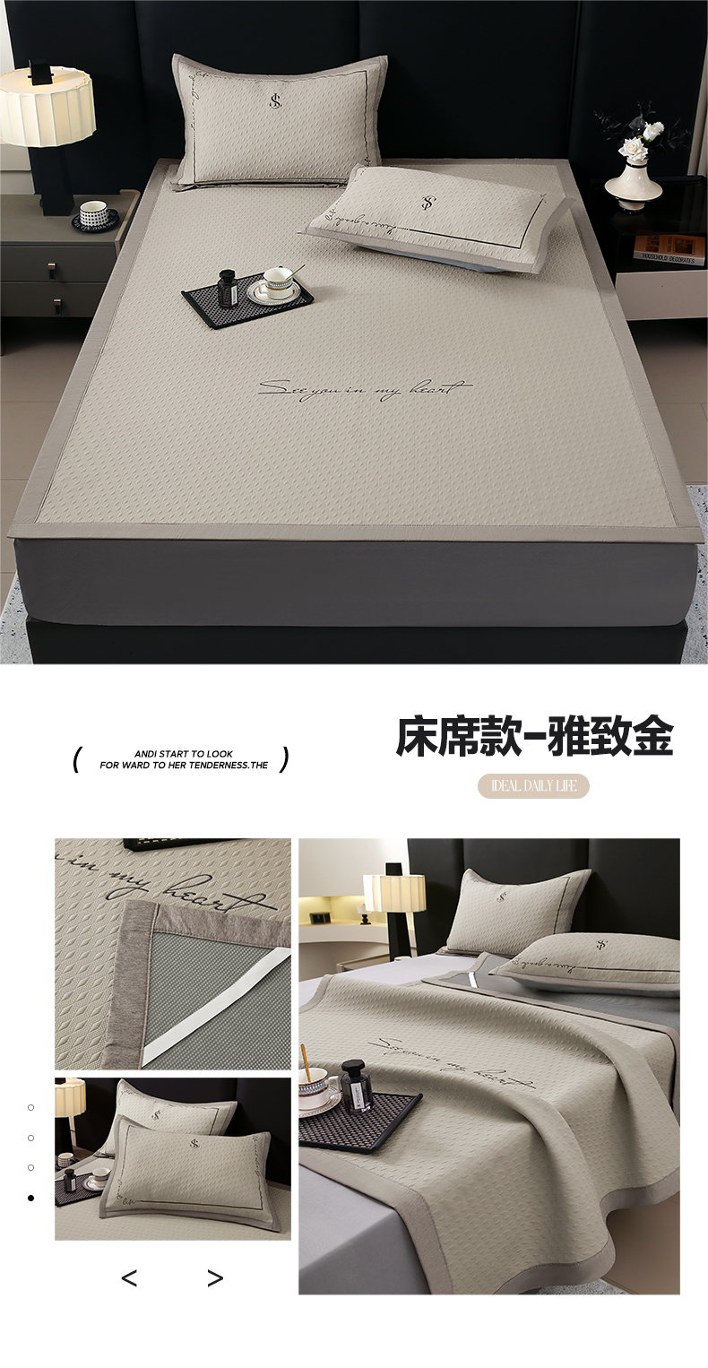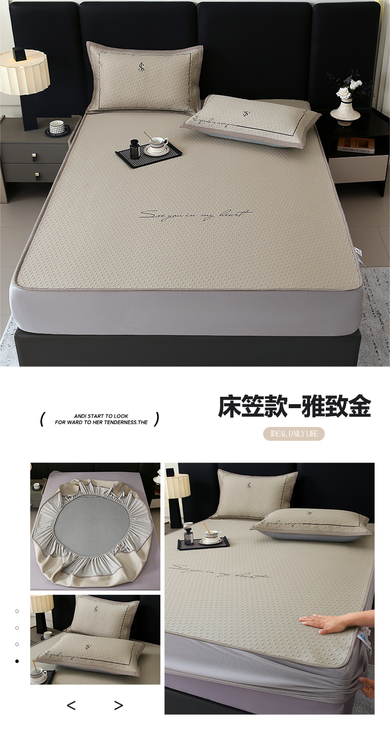 商品名称:宜家坊 2025新款A类PE中分子绣花软凉席-雅致 床笠款-雅致金