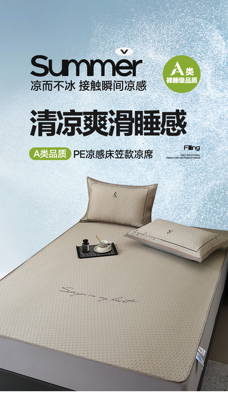 宜家坊 2025新款A类PE中分子绣花软凉席-雅致 床笠款-雅致金