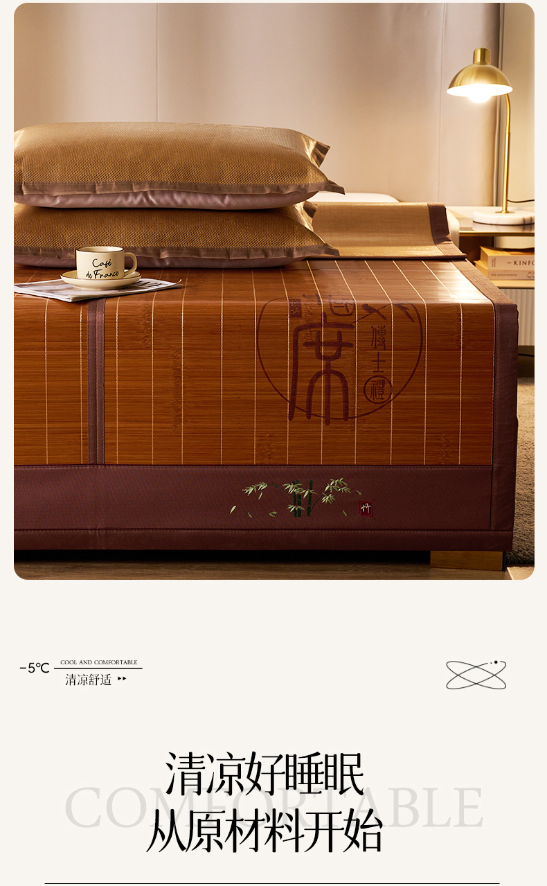 • 91家纺网 家纺一手货源 找家纺 (总)鑫琪莱家纺 2025新款双面竹席冰丝席竹凉席学生宿舍席子,草本-薰衣草-,国风-幽兰-,草本-艾草-,草本-茶香-,草本-檀香-,草本-茉莉-,锦绣良缘-,抑菌驱蚊-,国风-翠竹-,流金岁月-,艾草木纹-烟雨-,艾草木纹-翡翠-,艾草木纹-醇享-,艾草木纹-浮光-,一路有你-,藤枕套灰,藤枕套咖,冰藤提花枕套,艾香满园,草本-薄荷,迷你艾香-花边款,碳化原竹,清凉睡眠