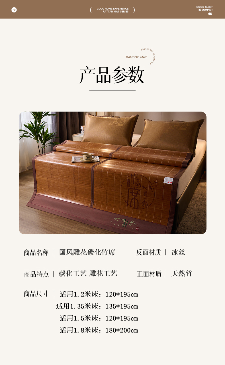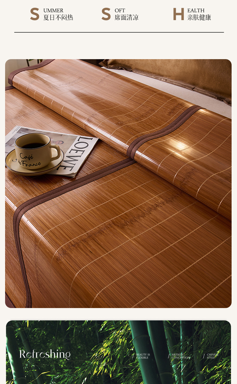 • 91家纺网 家纺一手货源 找家纺 鑫琪莱家纺 2025新款双面竹席冰丝席竹凉席学生宿舍席子 国风-翠竹-