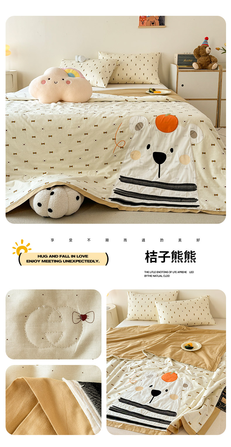 商品名称:鸣升家纺 2025新款精梳全棉纯棉绣花夏被夏凉被空调被 桔子熊熊