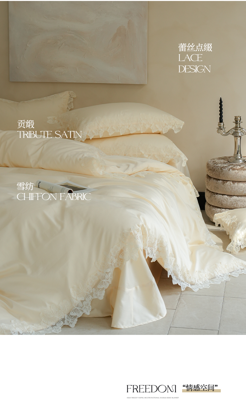 当前位置: 91家纺网 > 商品网购 > 床品套件 > 四件套 > 全棉普通四件套 > 秀色家纺 秀色家纺 2025新款法式田园轻奢蕾丝荷叶边被套贡缎全棉四件套纯棉公主风高级床品(网红实拍风) 星光蝴蝶-奶昔白