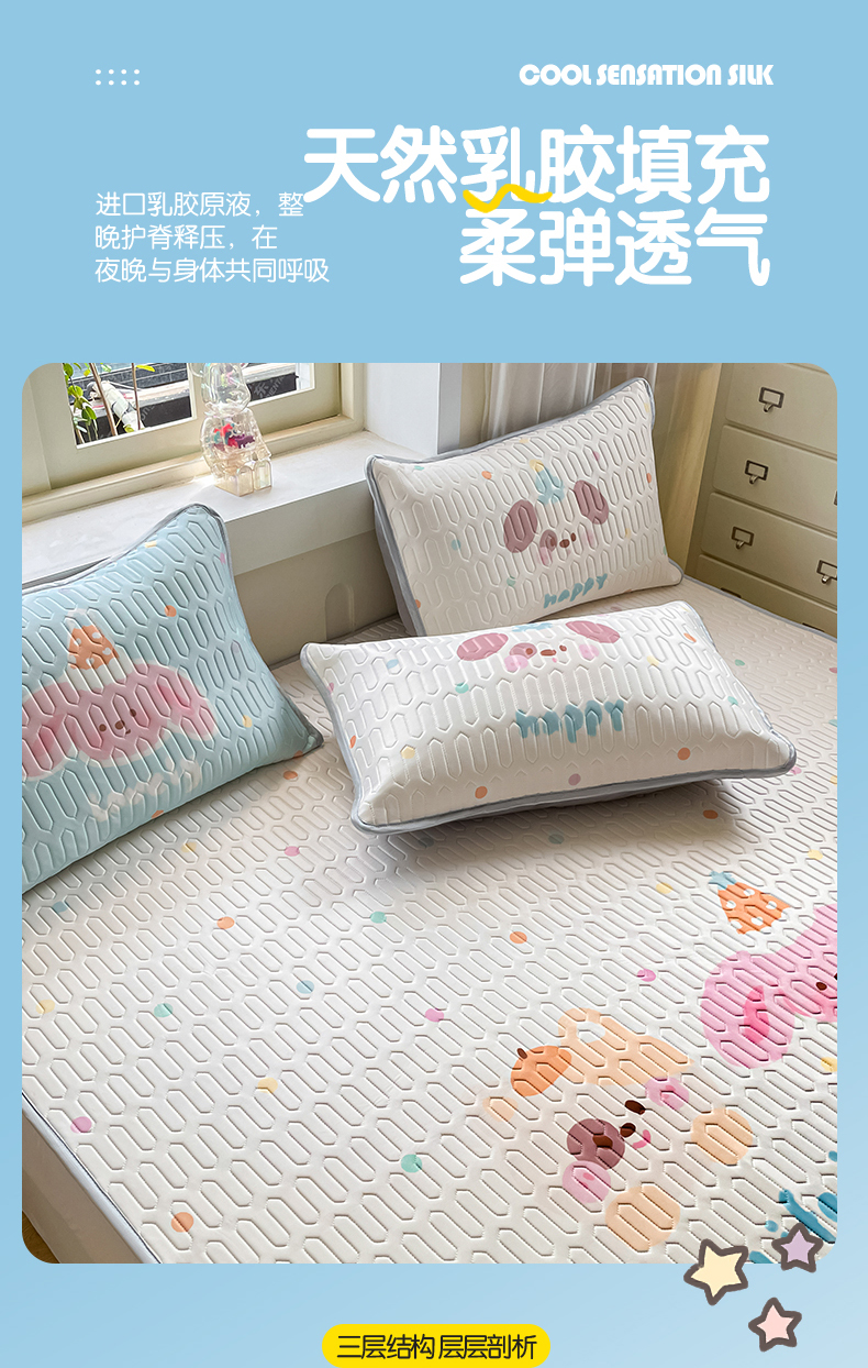 商品名称:布卢姆床垫 2025新款卡通A类大版数码凉感丝乳胶凉席 好朋友