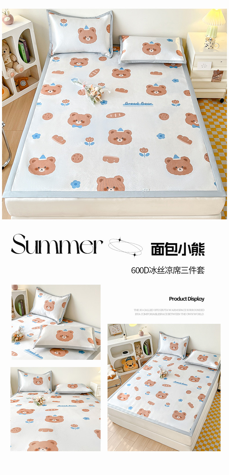 • 91家纺网 家纺一手货源 找家纺  (提供买家秀 爆款花型 不断货)2025新款600D小清新卡通印花冰丝枕套单品 面包小熊