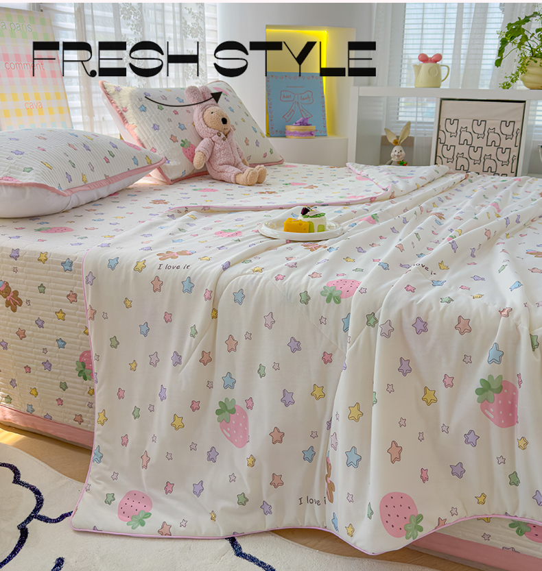 (总)赫梵茜 2025新款云朵棉毛巾绣床盖夏被被套四件套,小女孩,好朋友,恐龙,熊猫,月亮兔子,组合图仅做展示