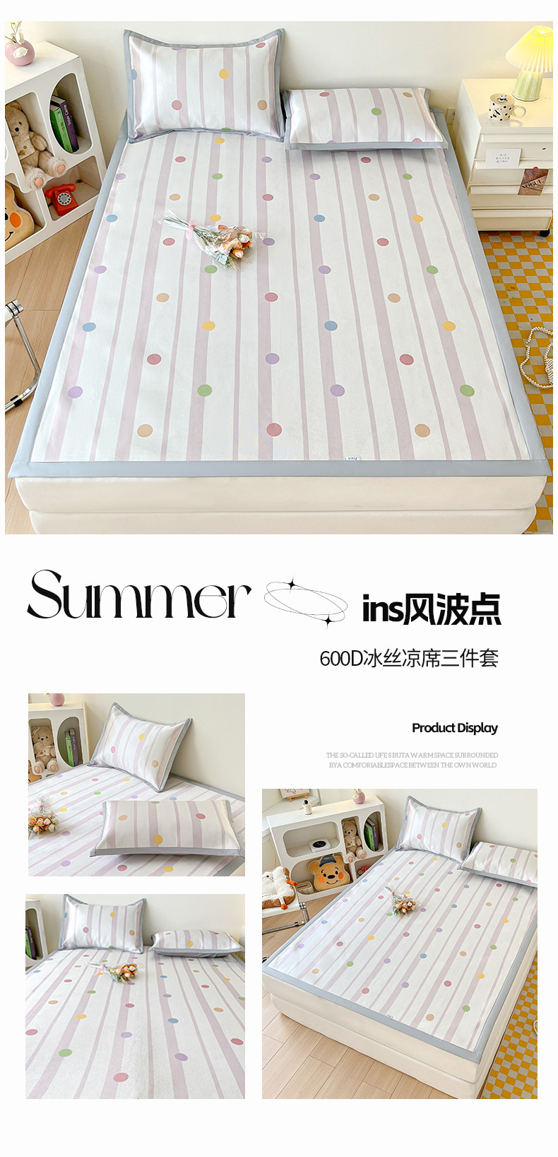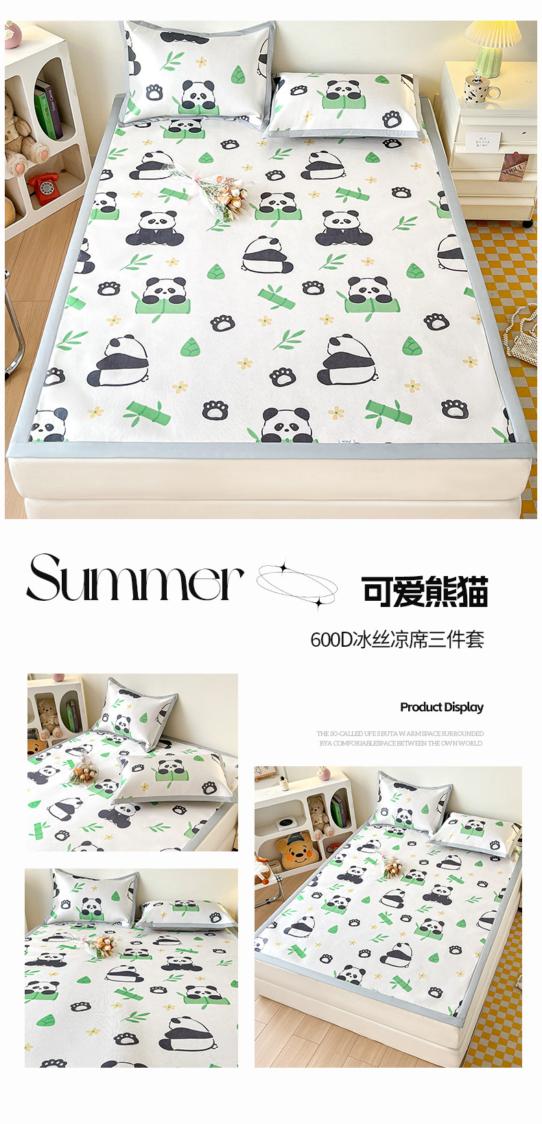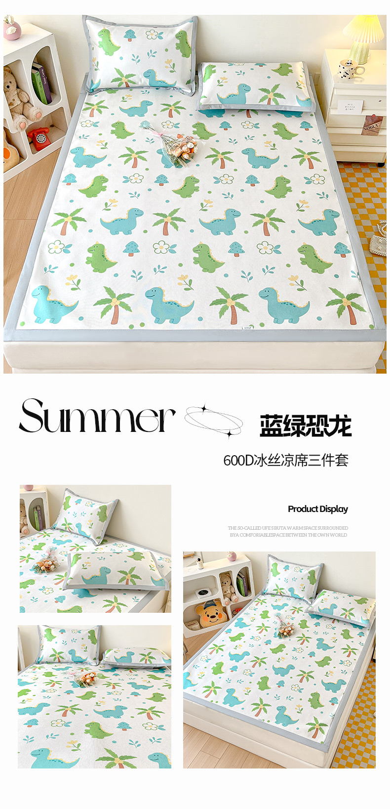 商品名称: (提供买家秀 爆款花型 不断货)2025新款600D小清新卡通印花冰丝凉席单件 渐变银