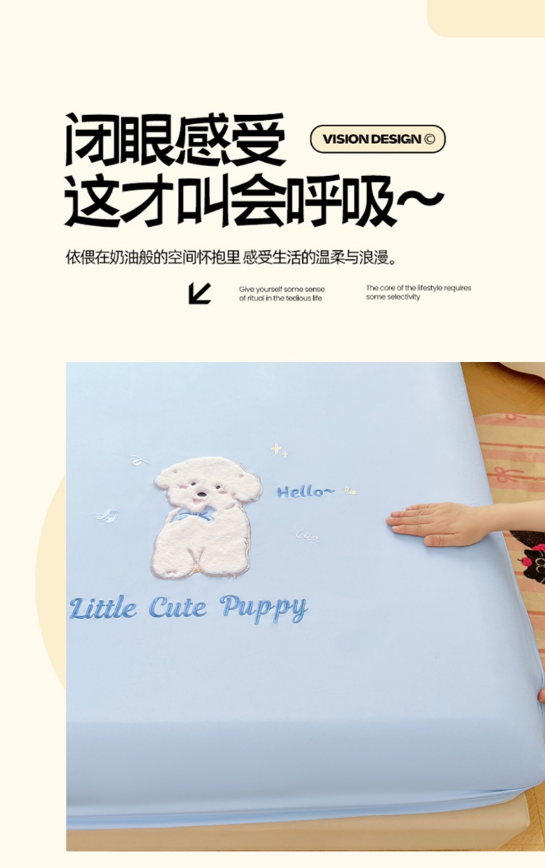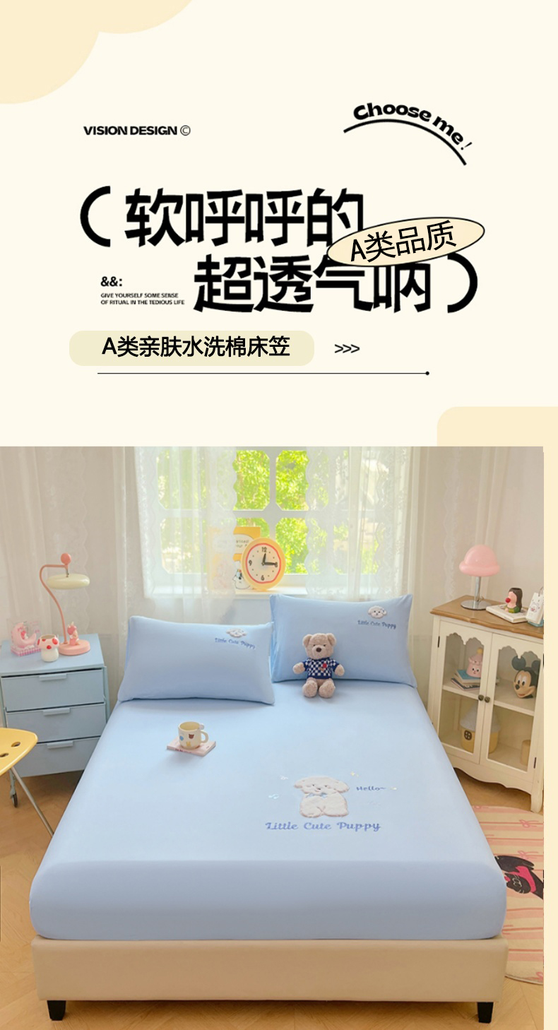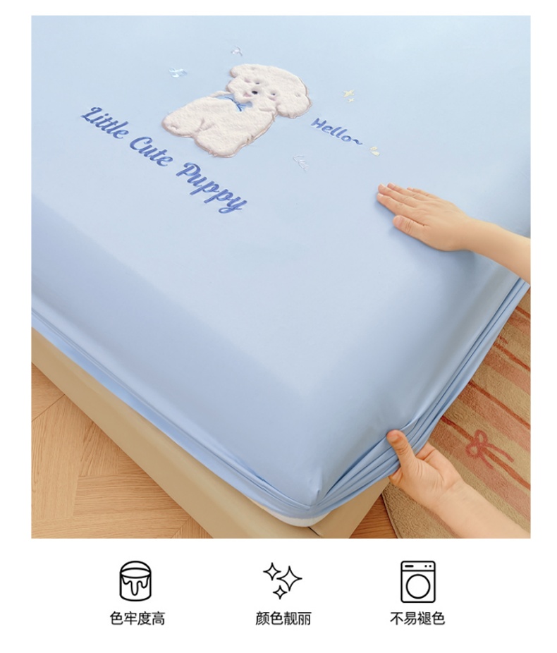 当前位置: 91家纺网 > 商品网购 > 床品套件 > 三件套 > 梦舒羽 2025春夏新款兔毛贴布绣卡通ins风水洗棉床笠学生宿舍床罩床垫保护垫三件套(带买家秀) 萌萌幸运汪-海盐兰