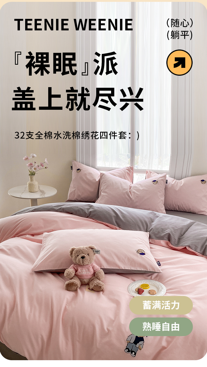 当前位置: 91家纺网 > 商品网购 > 床品套件 > 四件套 > 水洗棉四件套 > 泰迪爱兰Teddy ISLAND 2026新款32支全棉水洗棉绣花三件套四件套 浅玉+棕灰