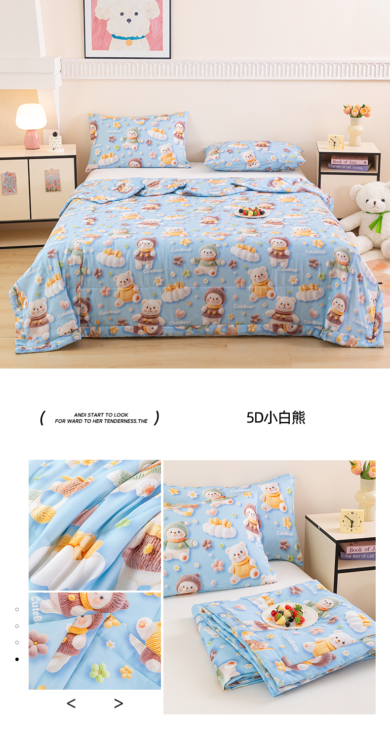 商品名称:天瑜家纺 2025新款5D印花棉绸卡通夏被 5D熊猫蓝