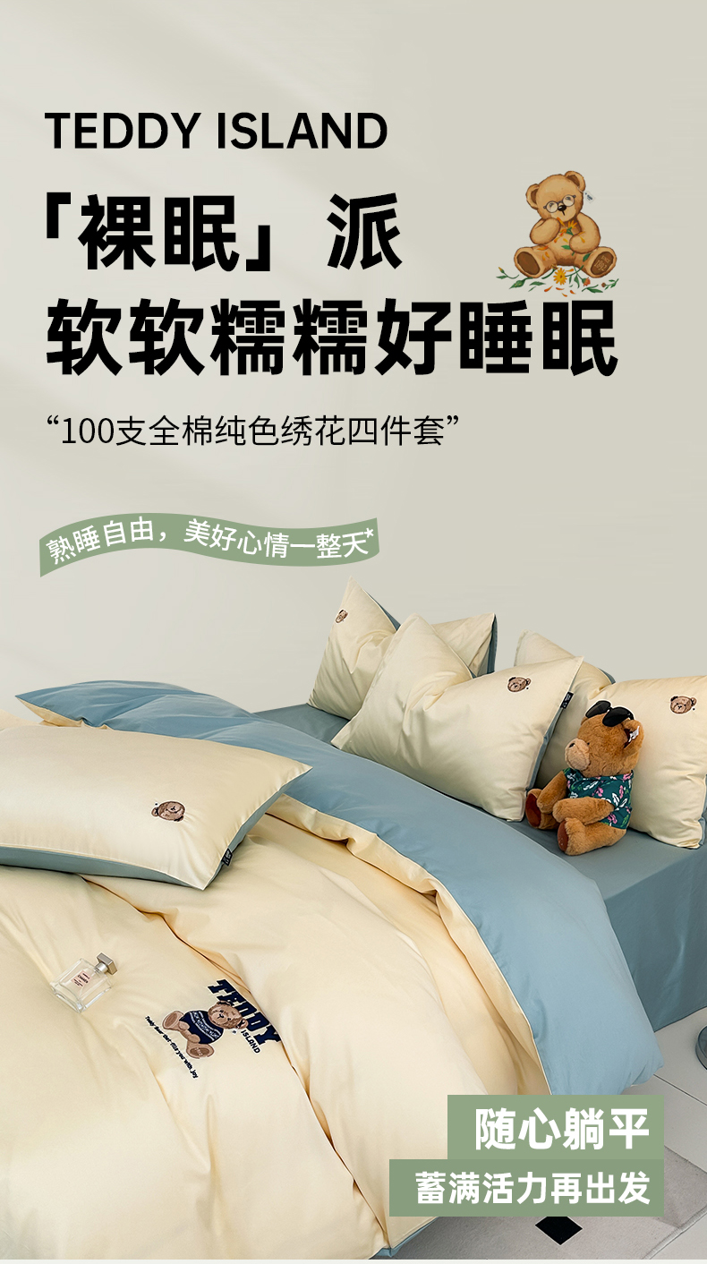 当前位置: 91家纺网 > 商品网购 > 床品套件 > 四件套 > 其它四件套 > 泰迪爱兰Teddy ISLAND 2026新款100支绣花(50支)三件套四件套 雪梨+青铜绿