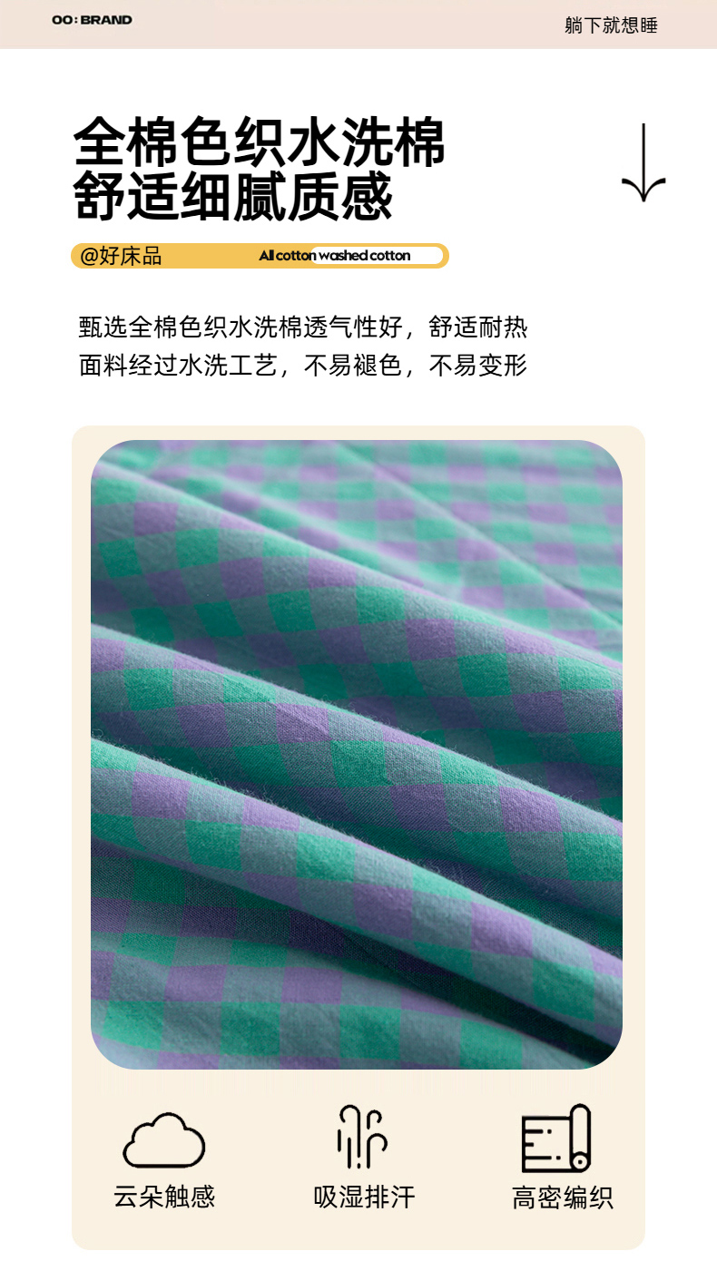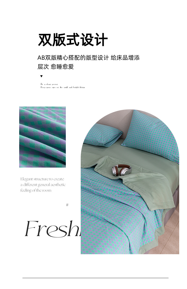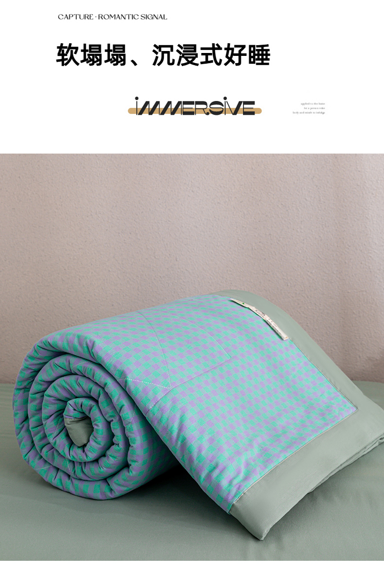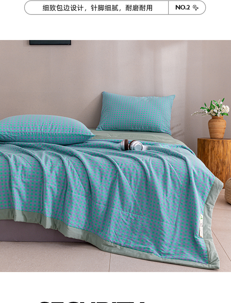 天瑜家纺 2025新款色织全棉水洗棉棉花夏被 绿紫小格