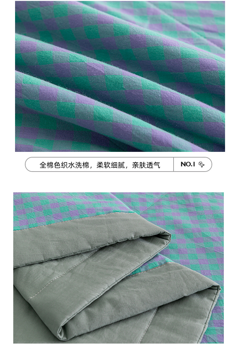 商品名称:天瑜家纺 2025新款色织全棉水洗棉棉花夏被 绿紫小格