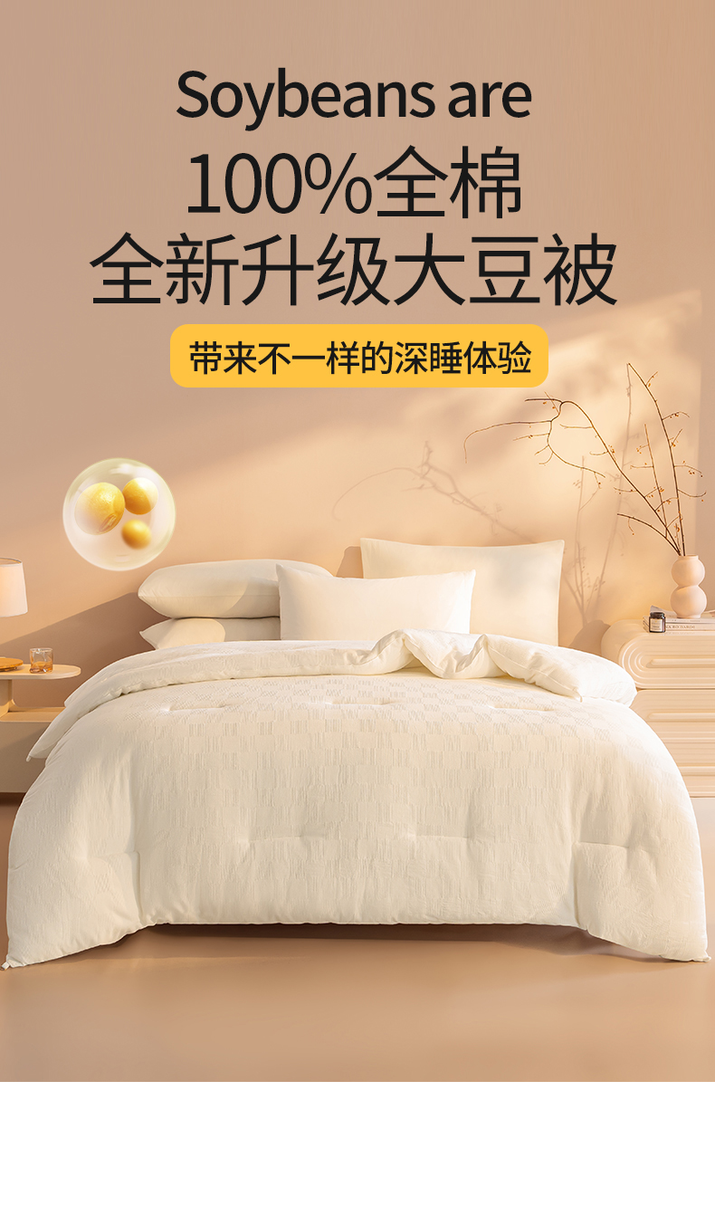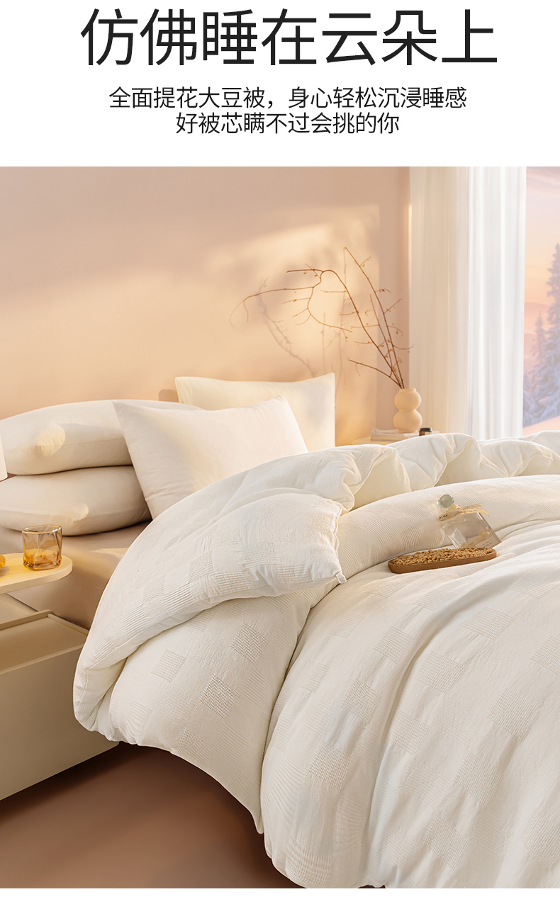 • 91家纺网 家纺一手货源 找家纺 阳光被业 2025新款100%纯棉提花大豆春秋被高端全棉面料冬被被子被芯学生夏被 本白