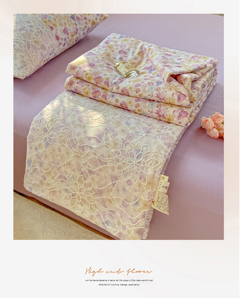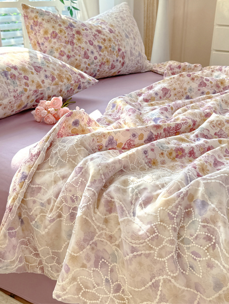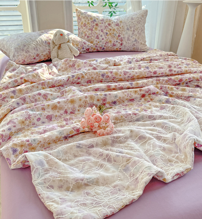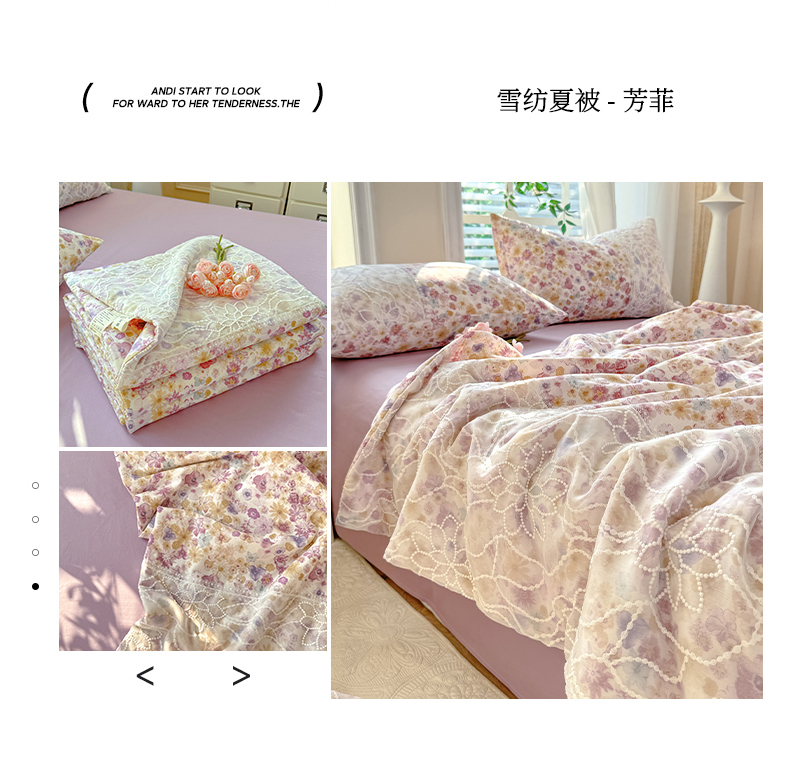 • 91家纺网 家纺一手货源 找家纺 眠博士 2025新款双层纱印花雪纺夏被  雪纺夏被-芳菲
