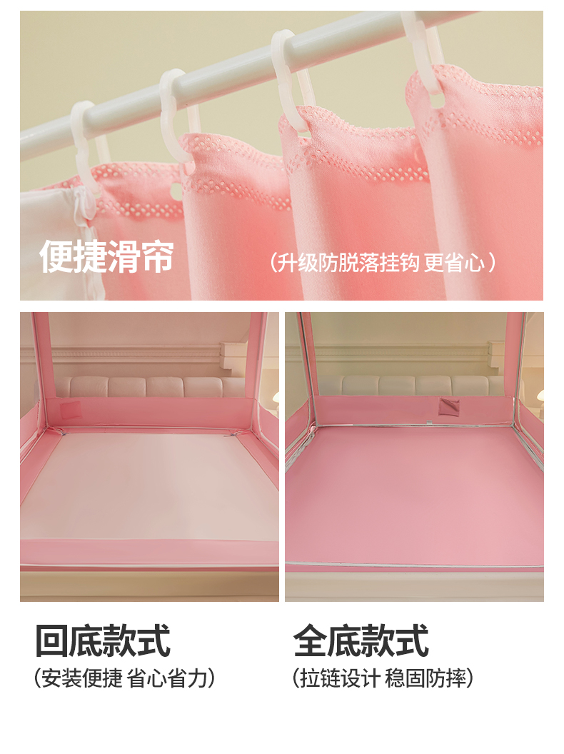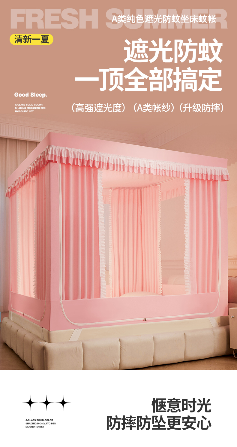 当前位置: 91家纺网 > 商品网购 > 床上用品 > 蚊帐 > 坐床式蚊帐 > 浪幔纱蚊帐 2025新款A类遮光防摔蚊帐坐床拉链全底回底纯色加厚支架 樱花粉【回底无帘款】