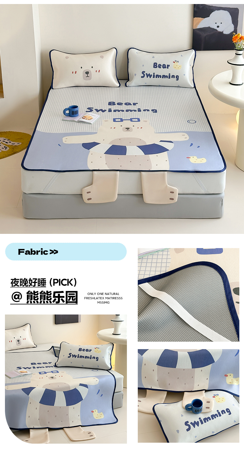 商品名称:澳萝拉 2025新款异形冰藤席数码印花系列席子凉席-风格二 熊熊乐园(床席款)