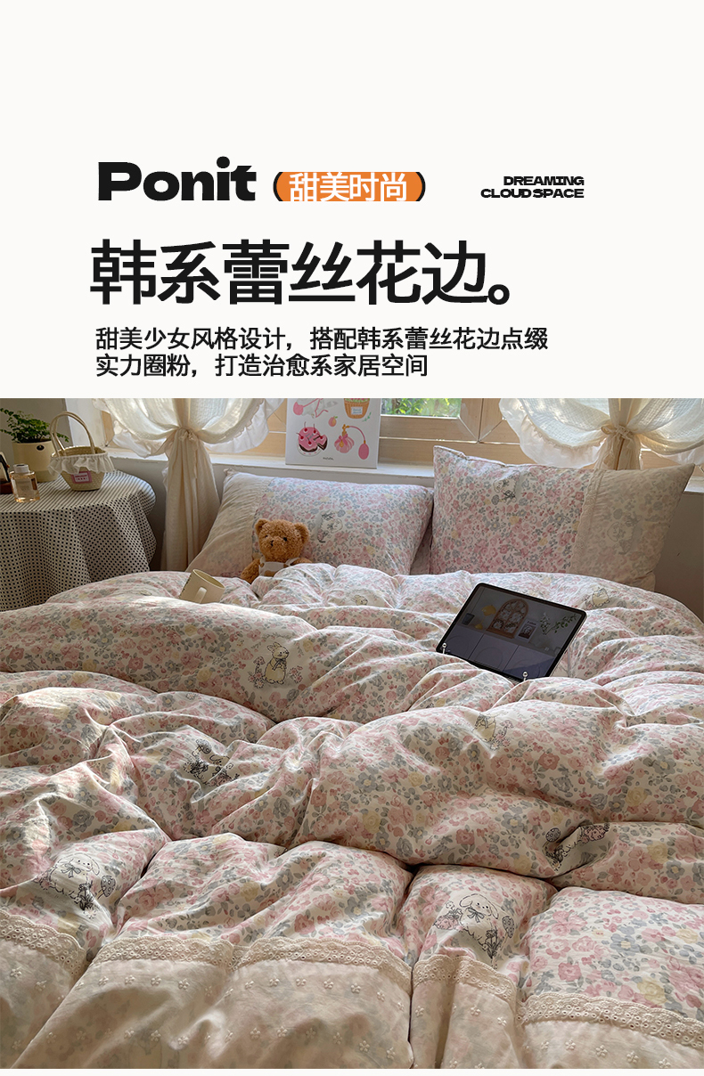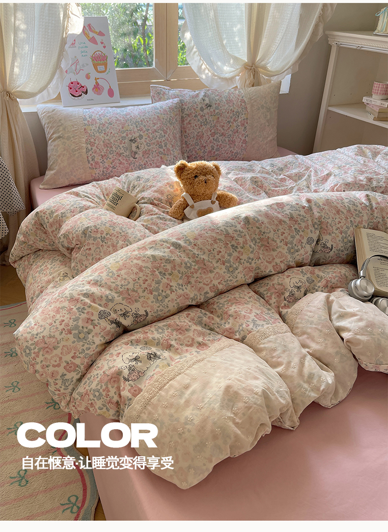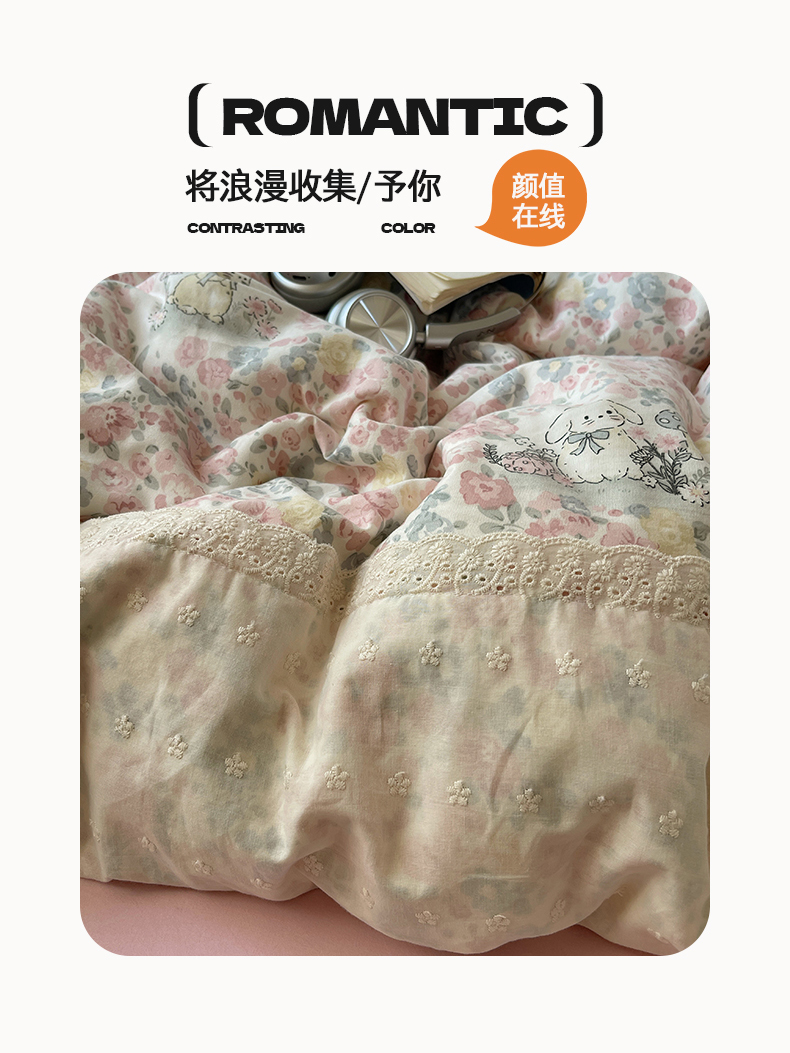 当前位置: 91家纺网 > 商品网购 > 床品套件 > 四件套 > 水洗棉四件套 > 桃心家居 2025新款云感水洗棉蕾丝花边四件套 水洗棉花边-蕾丝紫幽花兔