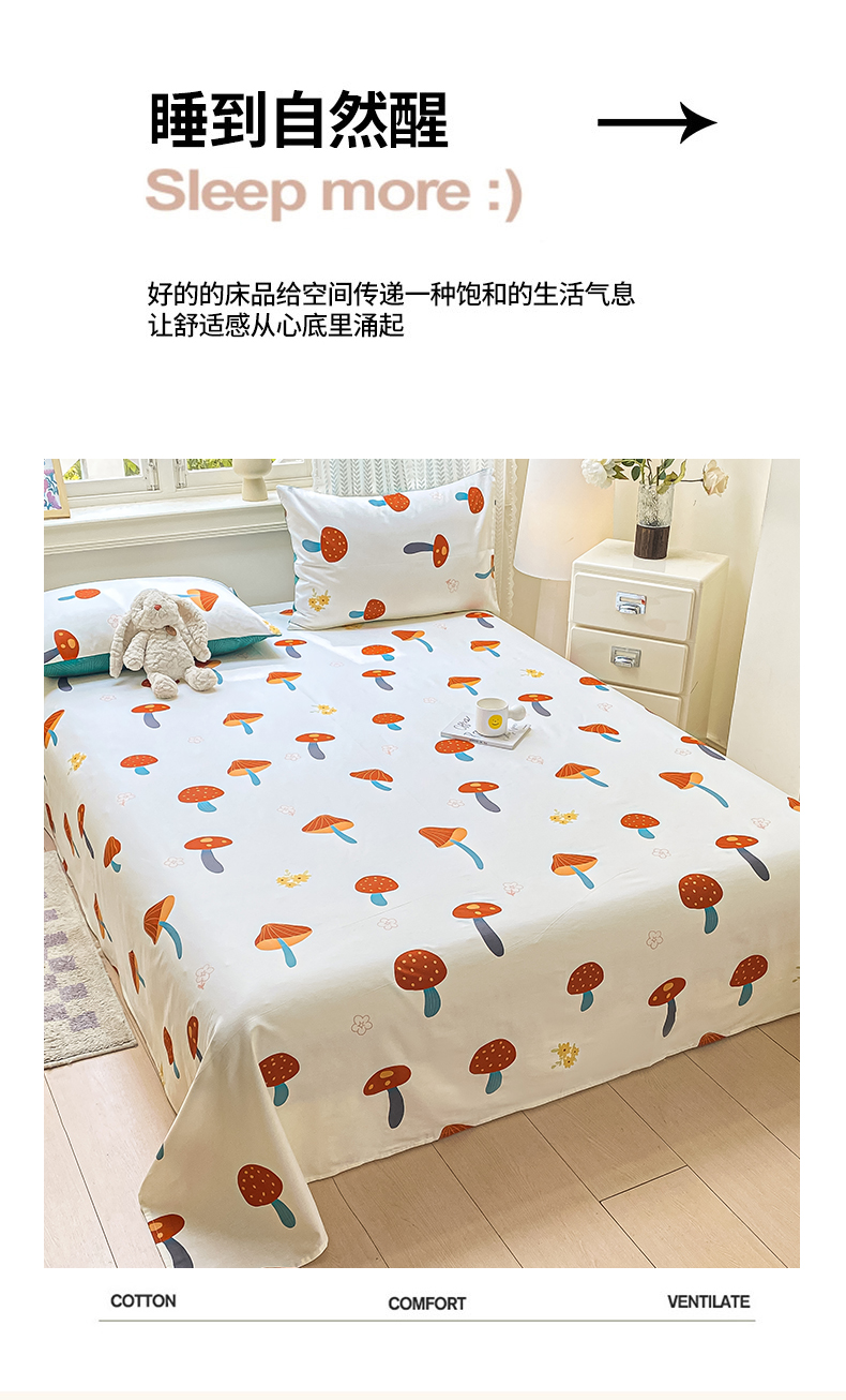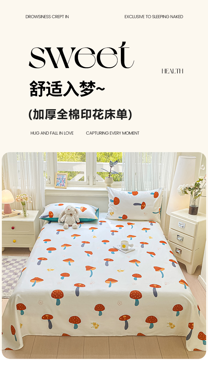 黑马家居 2025新款全棉纯棉印花单床单床单单件 蘑菇