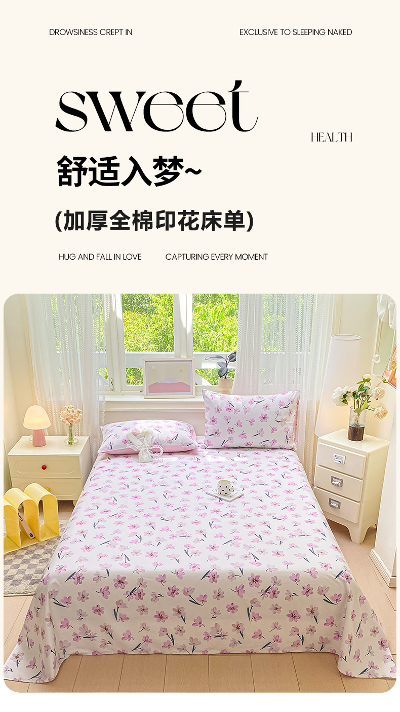 黑马家居 2025新款全棉纯棉印花单床单床单单件 悠兰