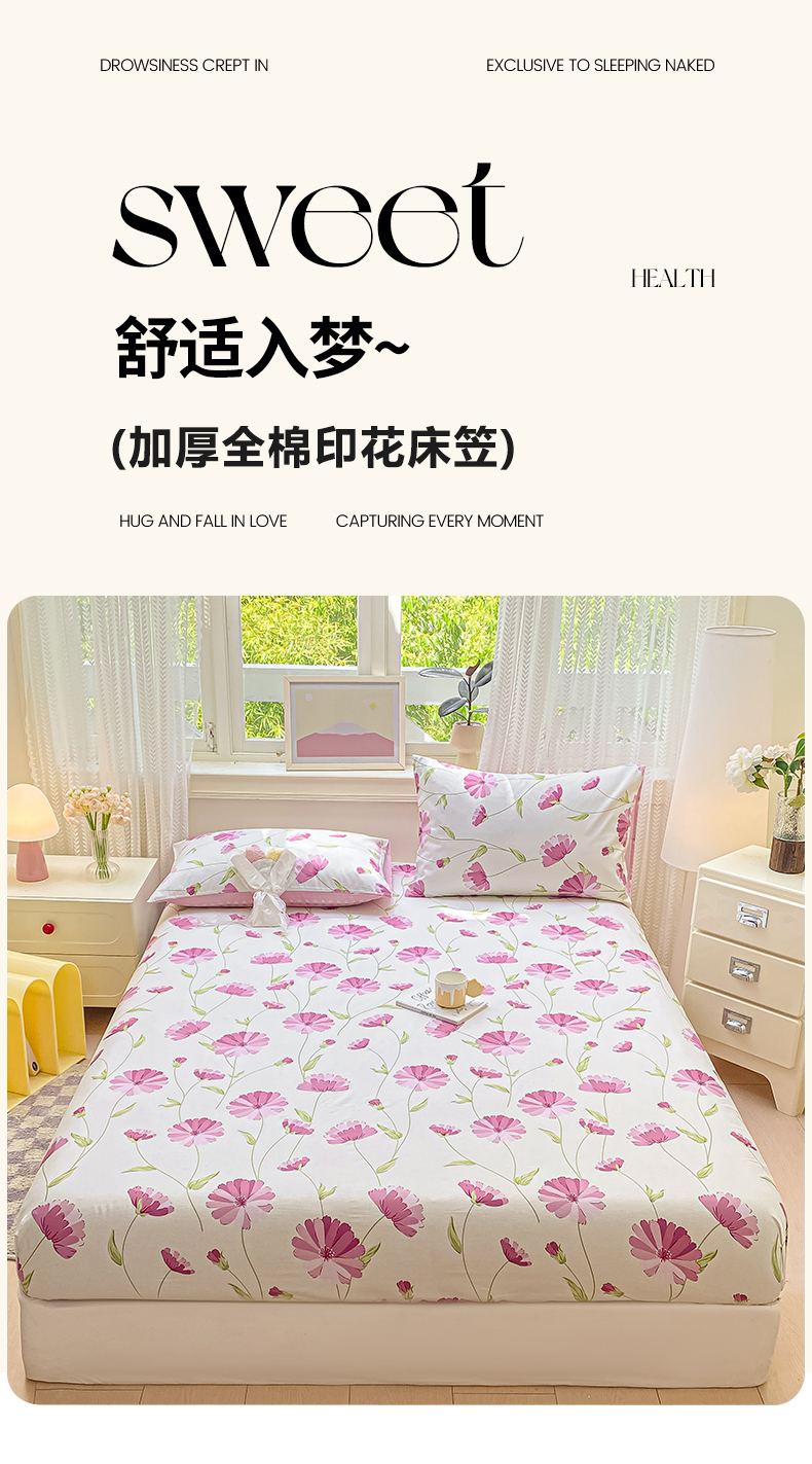 商品名称:黑马家居 2025新款全棉纯棉印花单床笠床笠单件 晚风轻漫