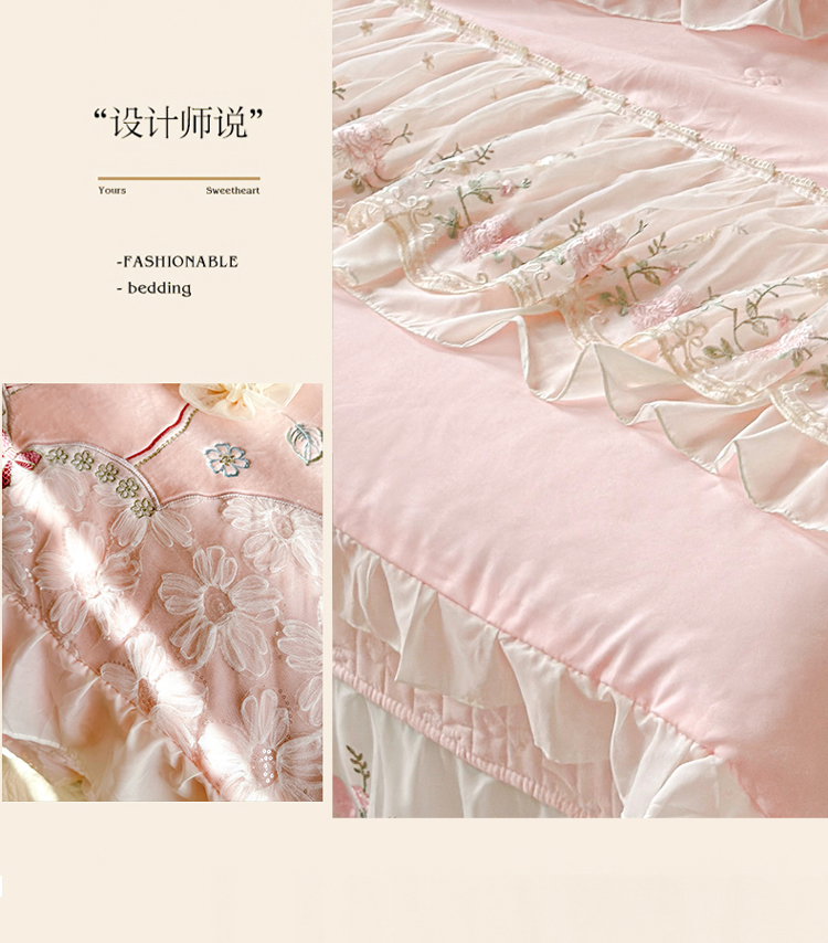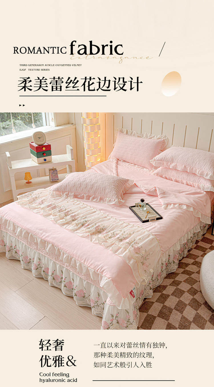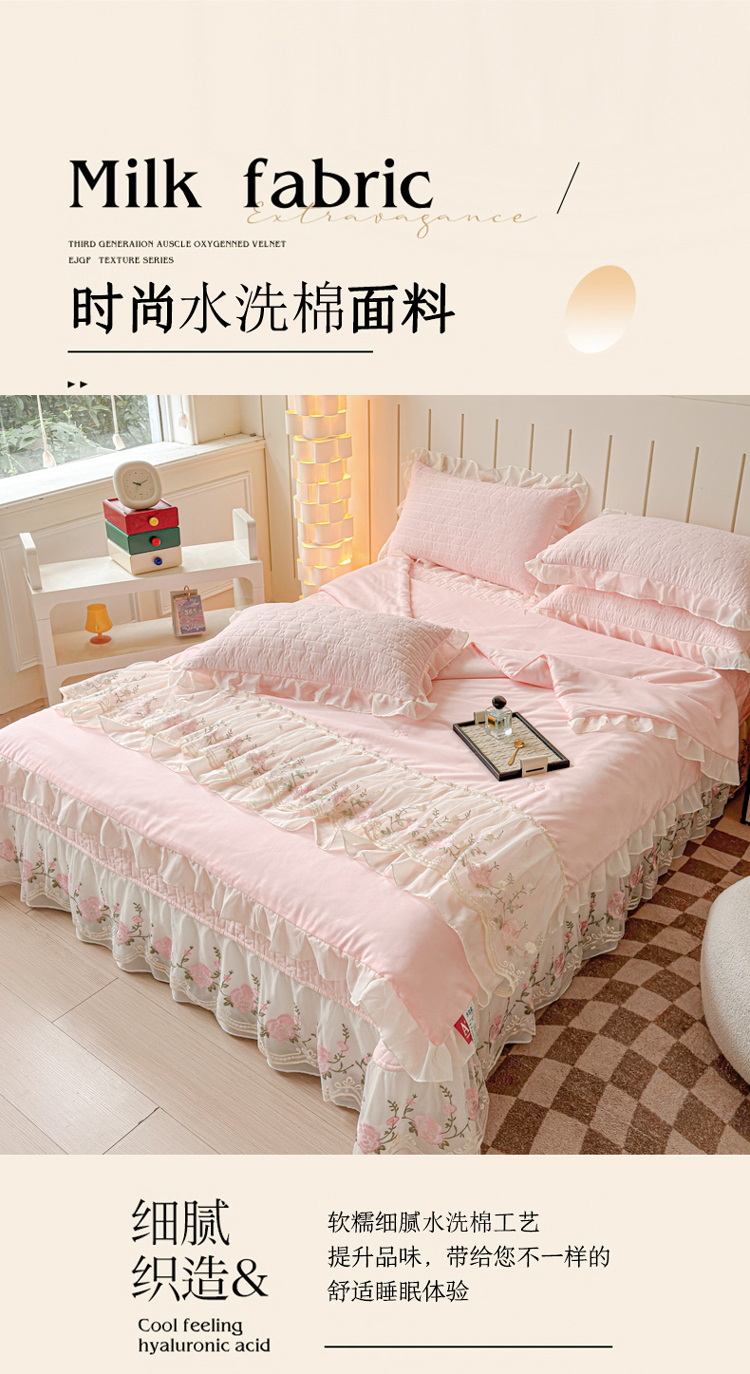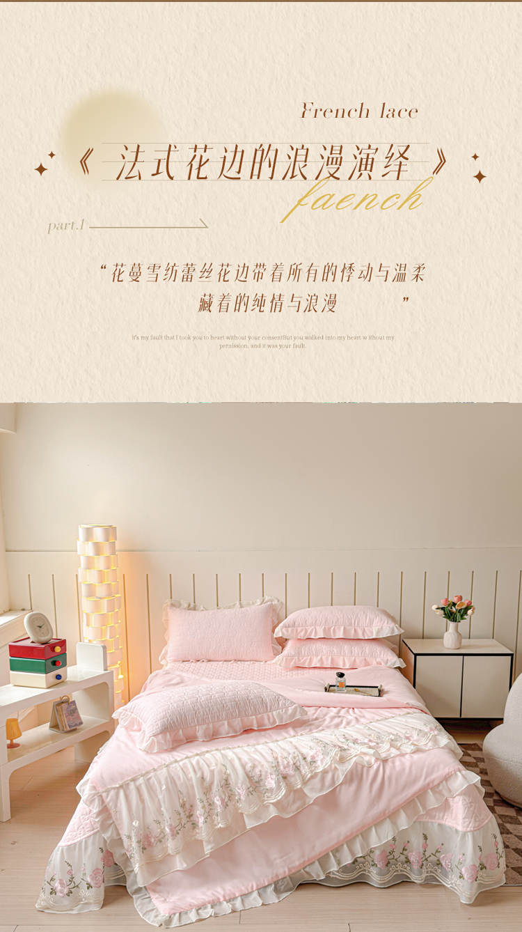 (总)漫布云2025春夏韩版公主风水洗棉蕾丝床盖款夏被四件套法式蕾丝花边床裙款四件套