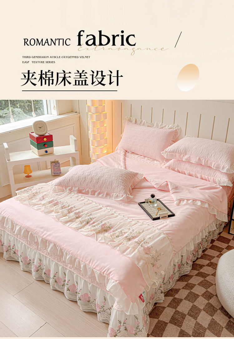 漫布云2025秋冬新款11斤230g全消光牛奶绒夹棉床盖款四件套纯色蕾丝花边刺绣床裙款床盖,蝶恋花-梦幻紫, 蝶恋花-嫩黄 ,蝶恋花-新芽绿, 蝶恋花-婴儿蓝, 蝶恋花-樱花粉