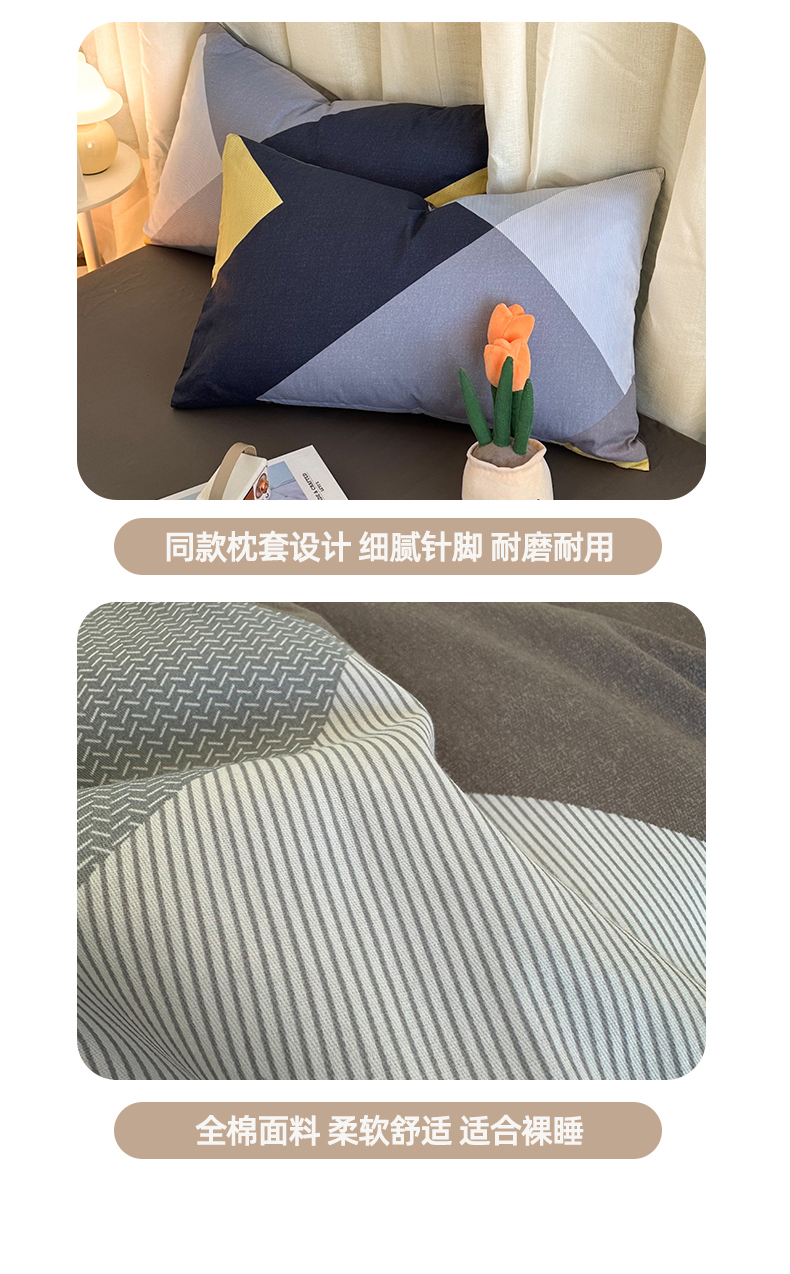 当前位置: 91家纺网 > 商品网购 > 床品套件 > 四件套 > 全棉普通四件套 > 简宜家居(朝初家纺) 2025新款13070全棉纯棉斜纹简约北欧风四件套 墨尔本