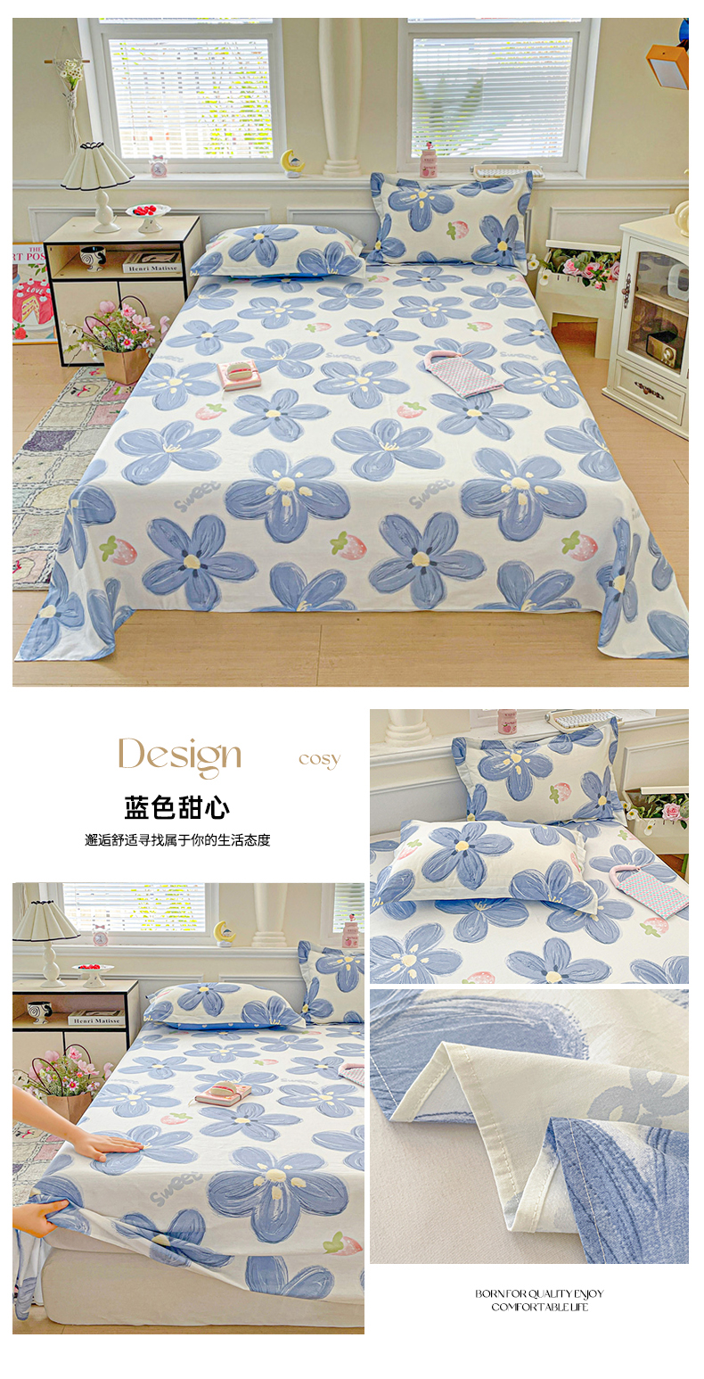 商品名称:卡普家居 2025新款全棉印花A版床单 蓝色甜心