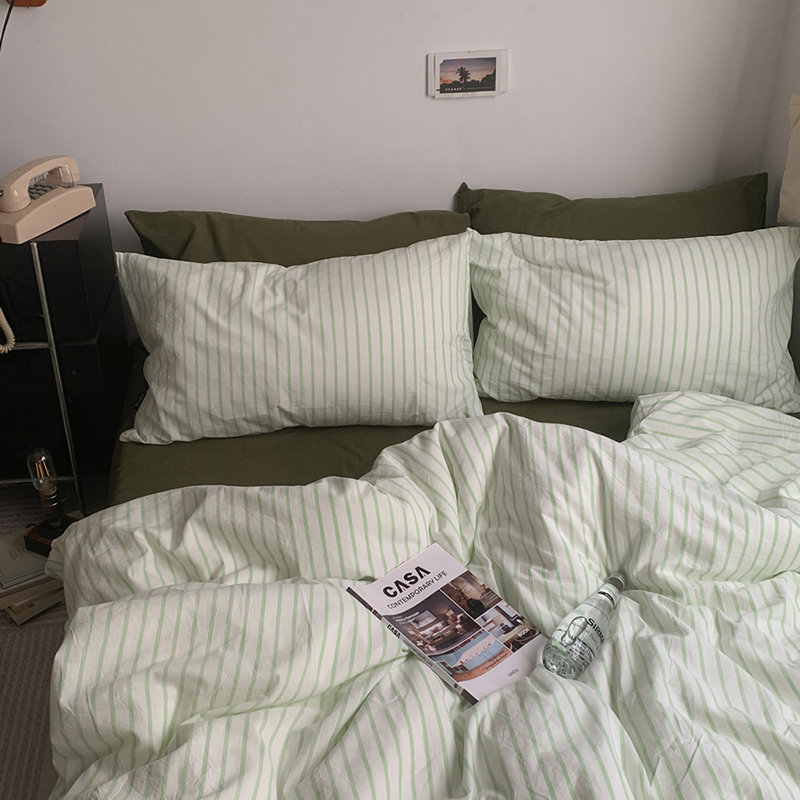 当前位置: 91家纺网 > 商品网购 > 床品套件 > 四件套 > 化纤活性四件套 > (总)柚可家居 2025新款全棉色织水洗棉四件套-绿鸭湖