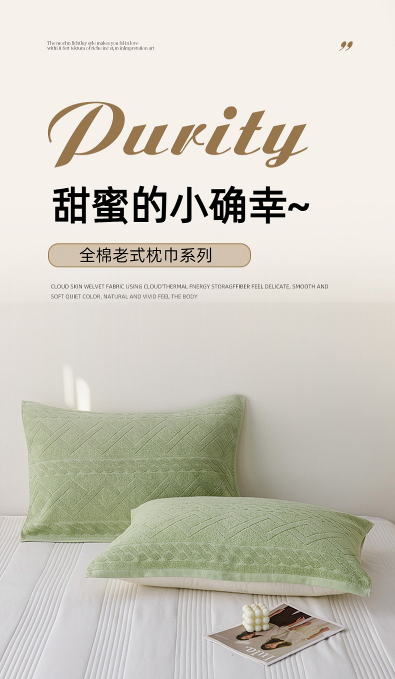 悦然毛巾被 2025新款全棉纯棉老式枕巾毛圈款 旧时光灰青