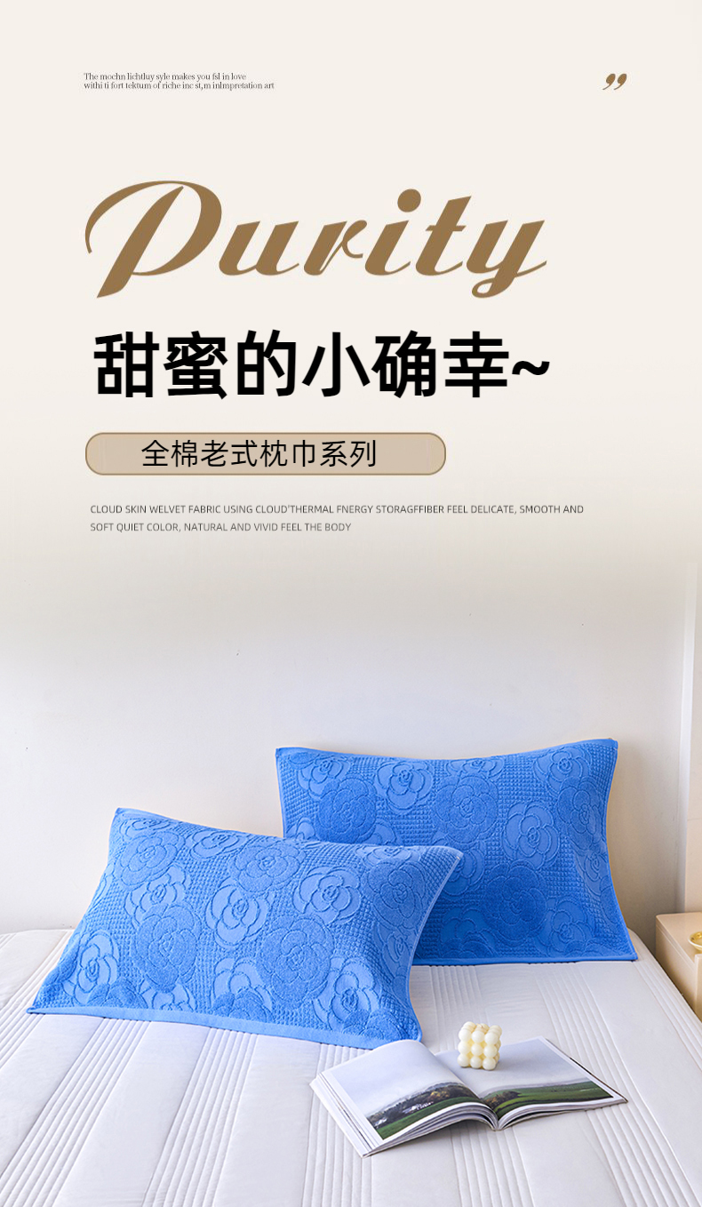 悦然毛巾被 2025新款全棉纯棉老式枕巾毛圈款 玫瑰物语深蓝