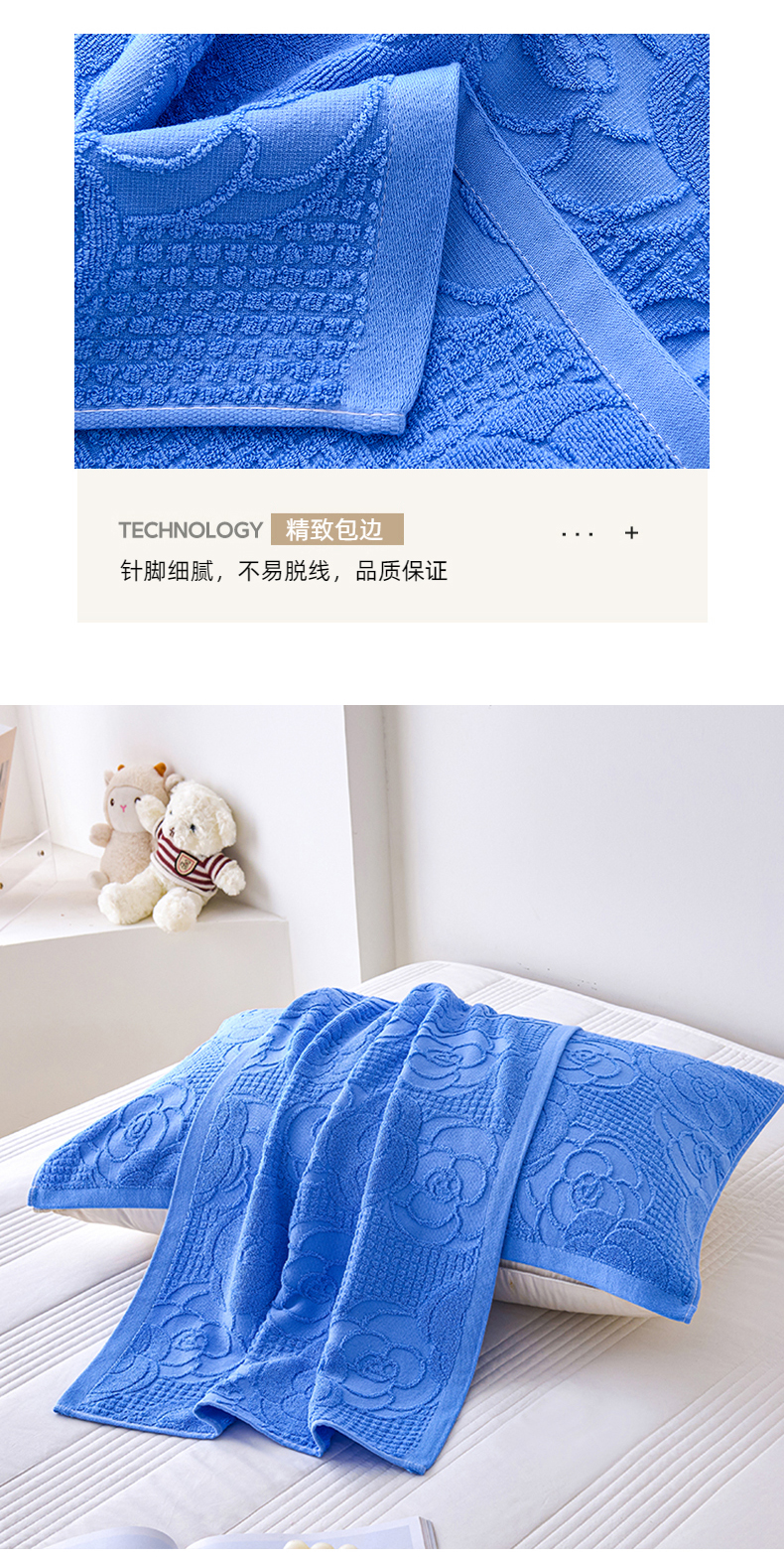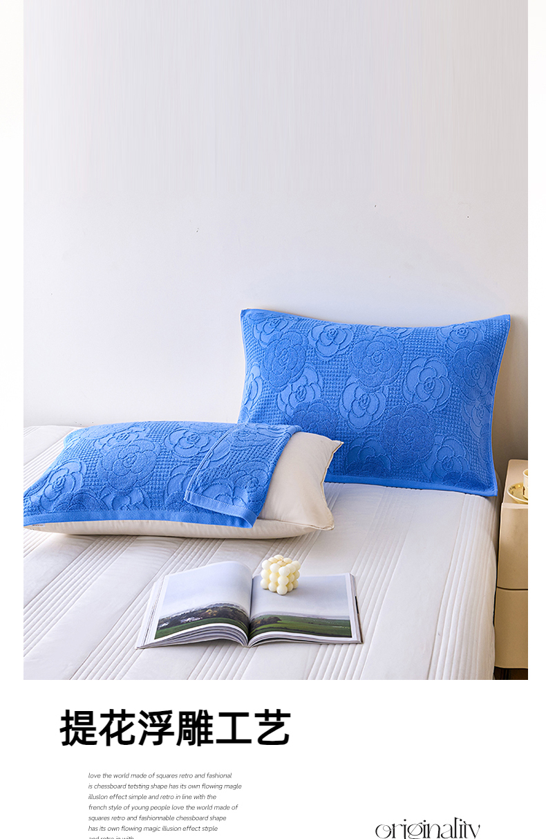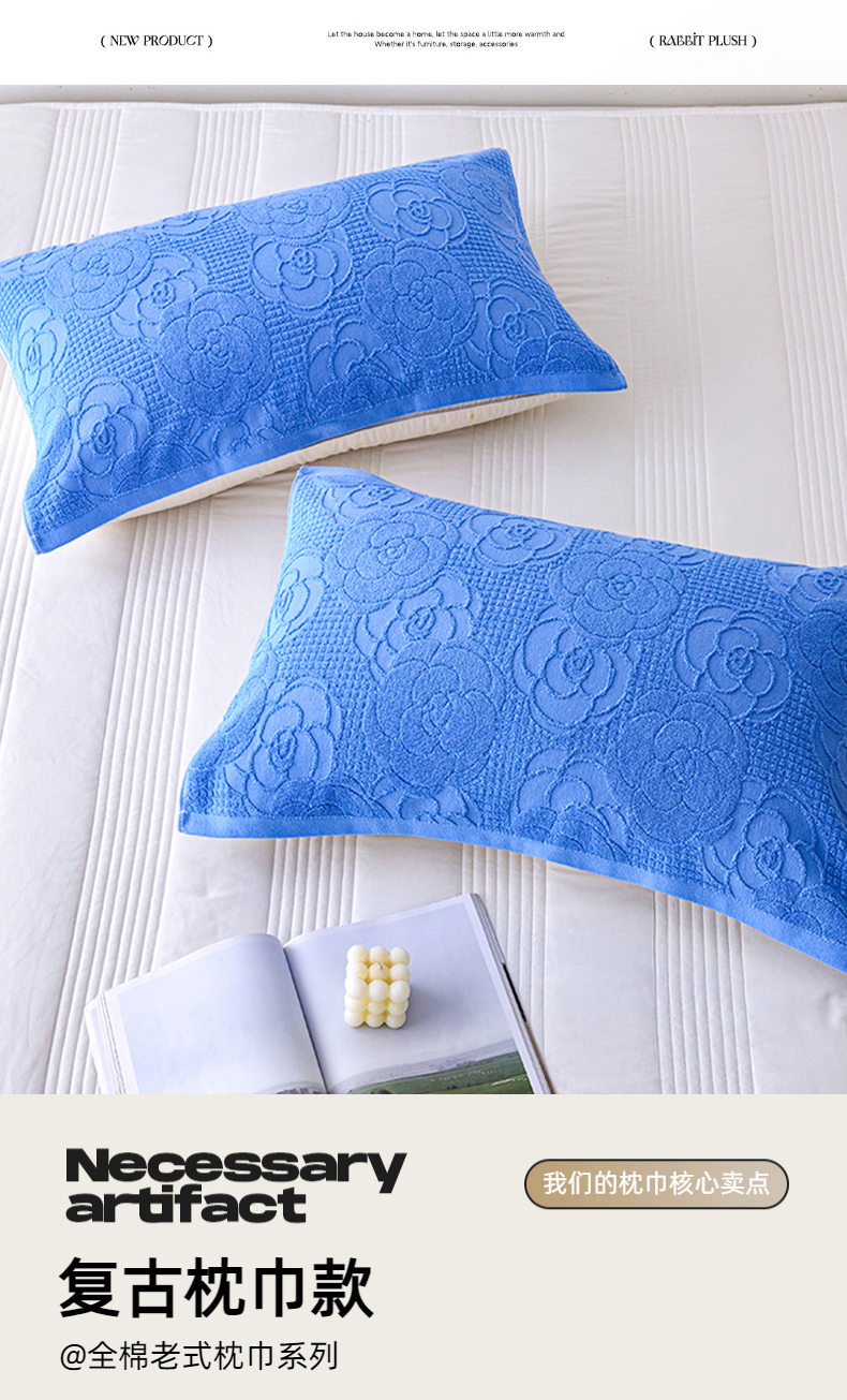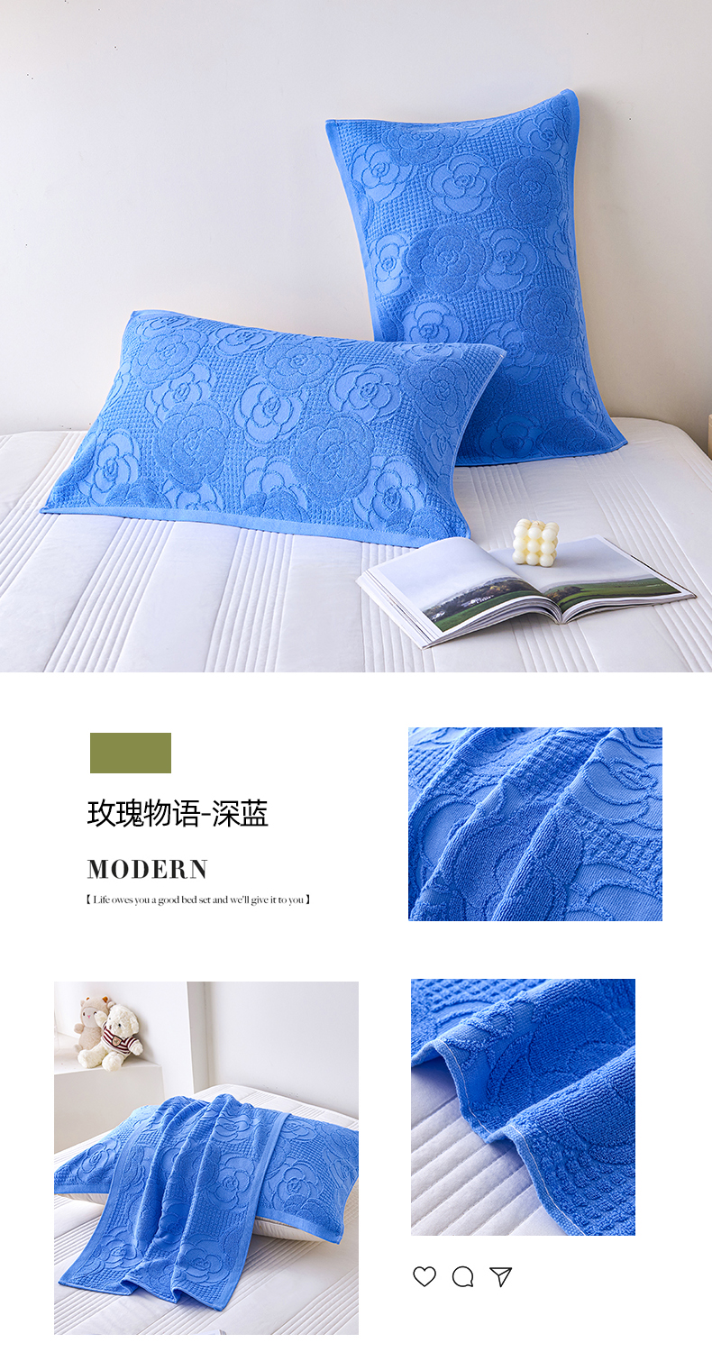 商品名称:悦然毛巾被 2025新款全棉纯棉老式枕巾毛圈款 玫瑰物语深蓝