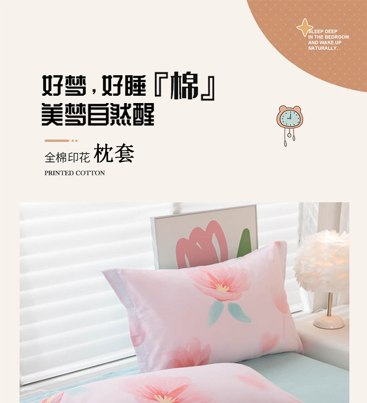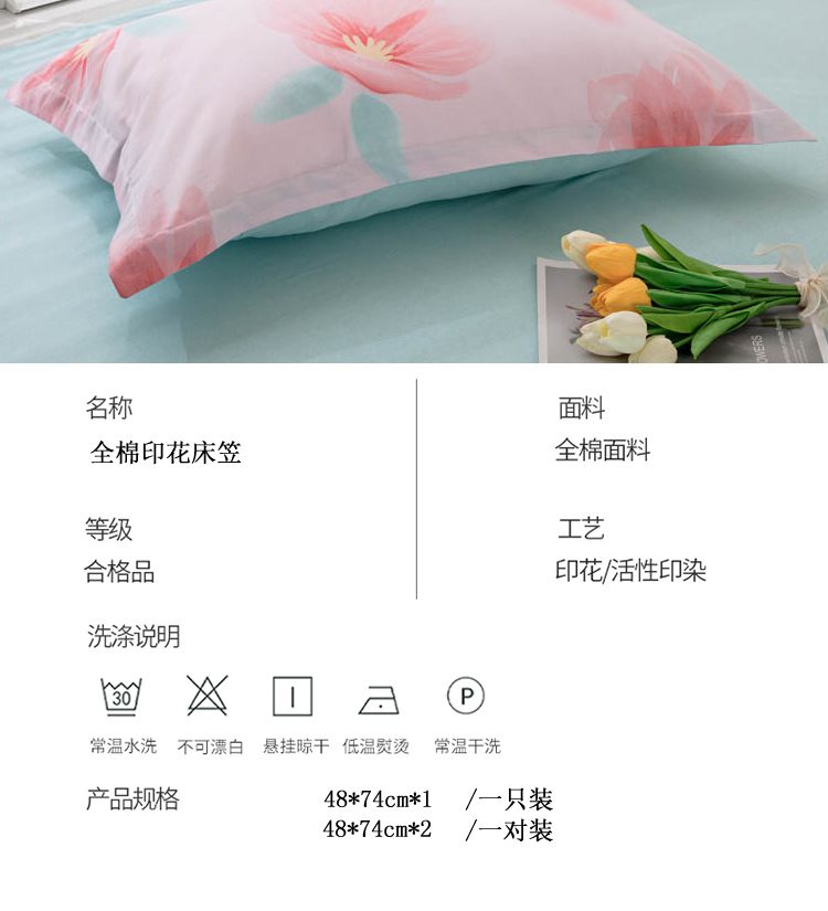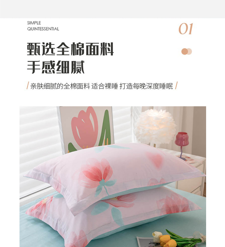 商品名称:贝兰仙奴 2025春夏新款全棉纯棉12868印花单枕套 枕套单件 花恋粉