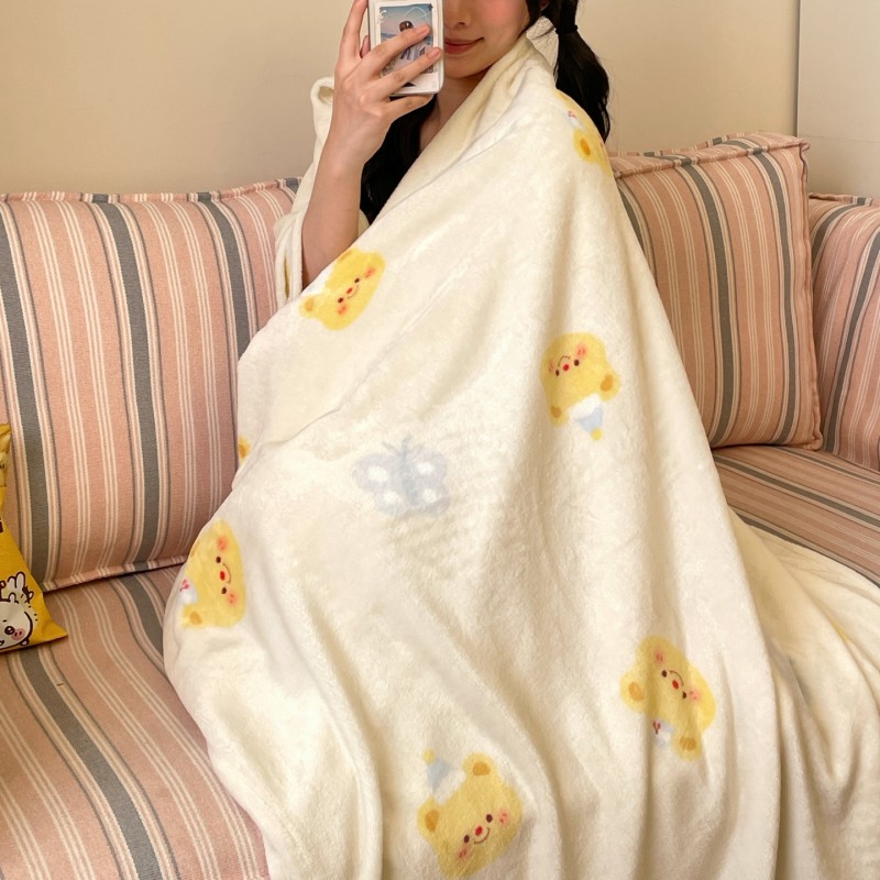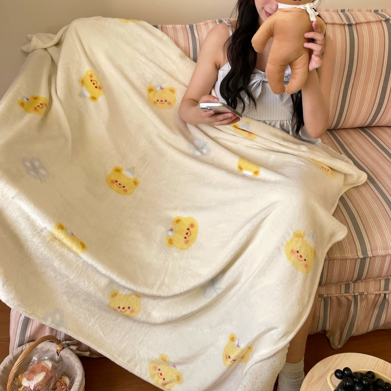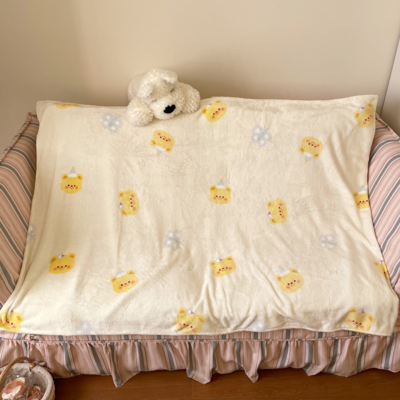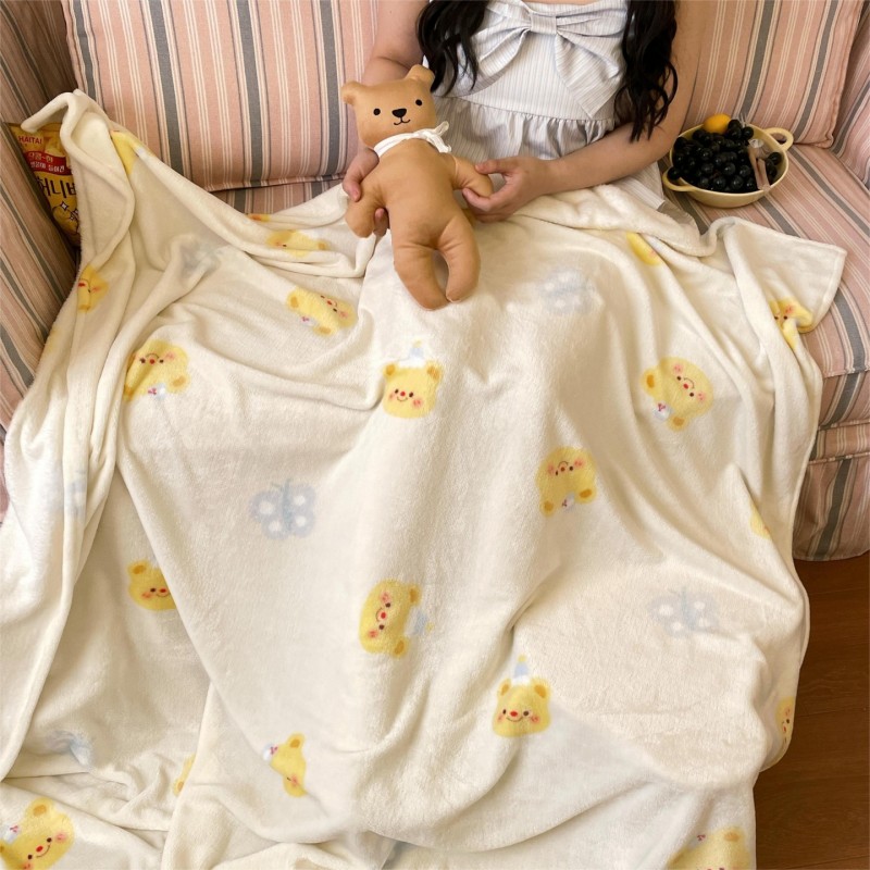 顾里家纺 2025新款ins少女奶油治愈双面牛奶绒毯 黄油小熊