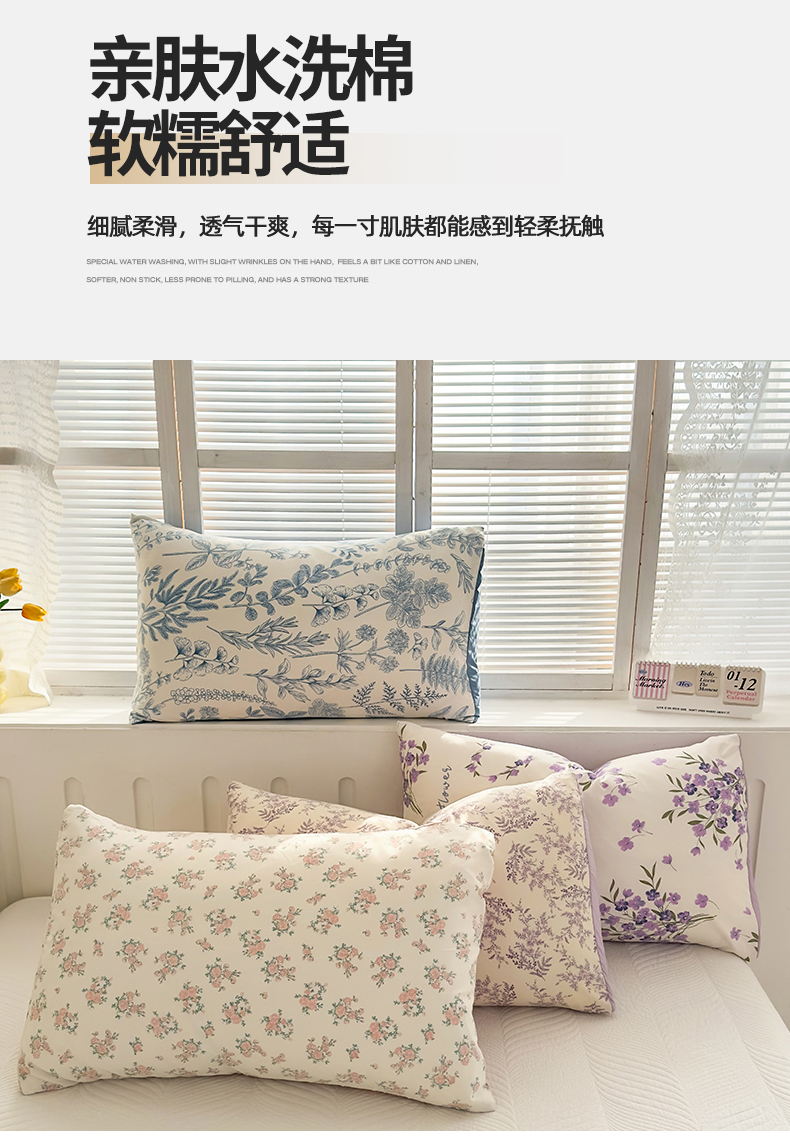 多品家纺 2025新款花卉水洗棉单枕套枕套单件 半夏