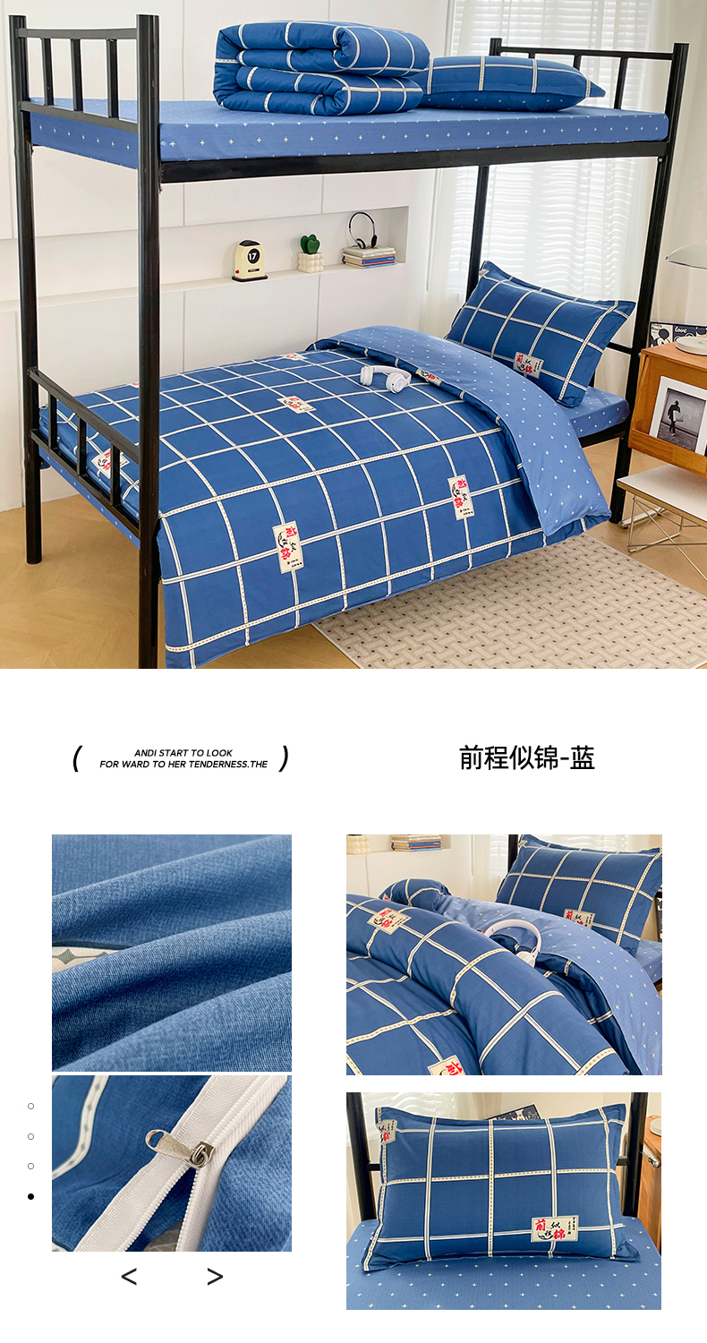 当前位置: 91家纺网 > 商品网购 > 床品套件 > 三件套 > 锦润家纺2025新款全棉13372学生三件套纯棉宿舍六件套 前程似锦-蓝