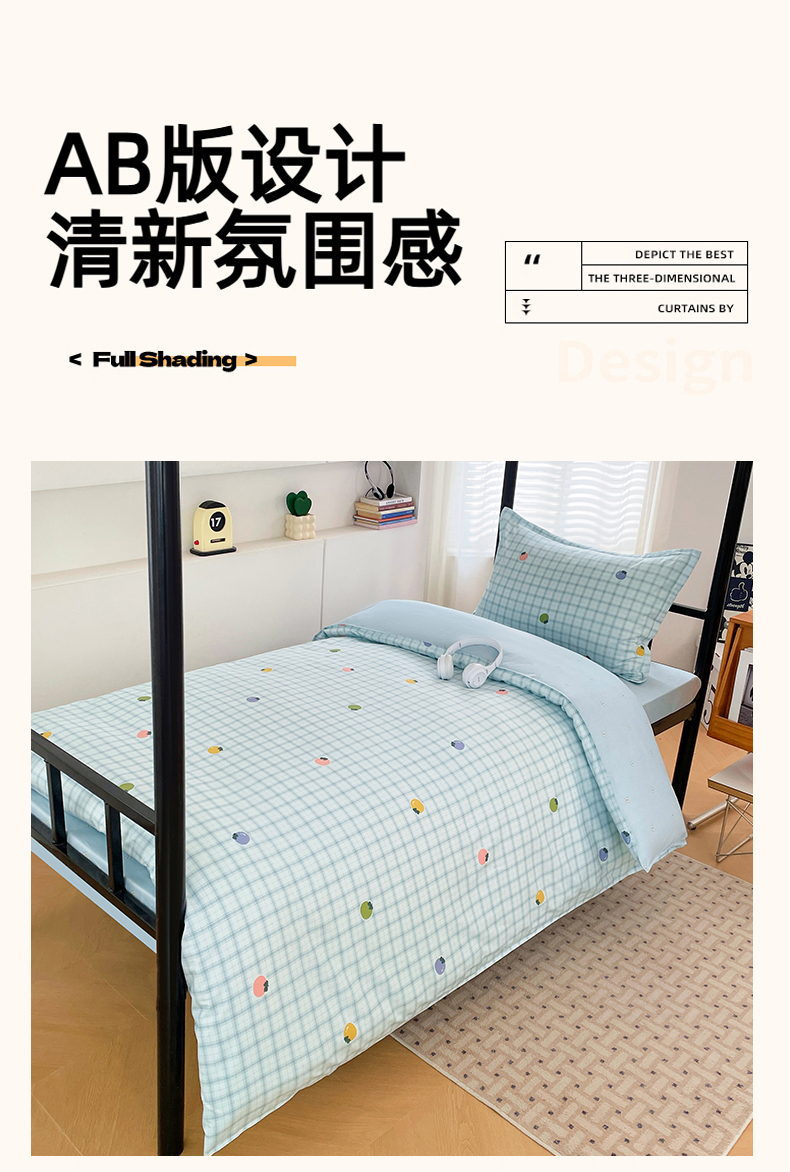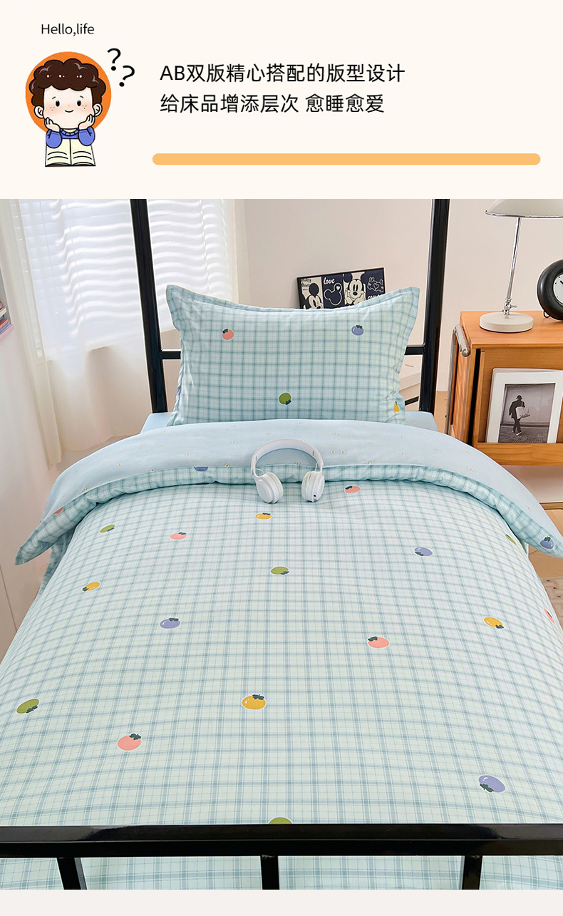 当前位置: 91家纺网 > 商品网购 > 床品套件 > 三件套 > 锦润家纺2025新款全棉13372学生三件套纯棉宿舍六件套 水果波波