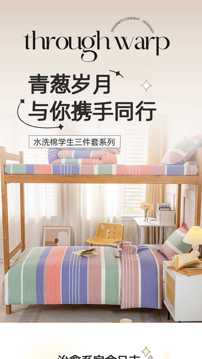 • 91家纺网 家纺一手货源 找家纺 锦润家纺 2025新款色织水洗棉三件套学生三件套全棉三件套大礼包